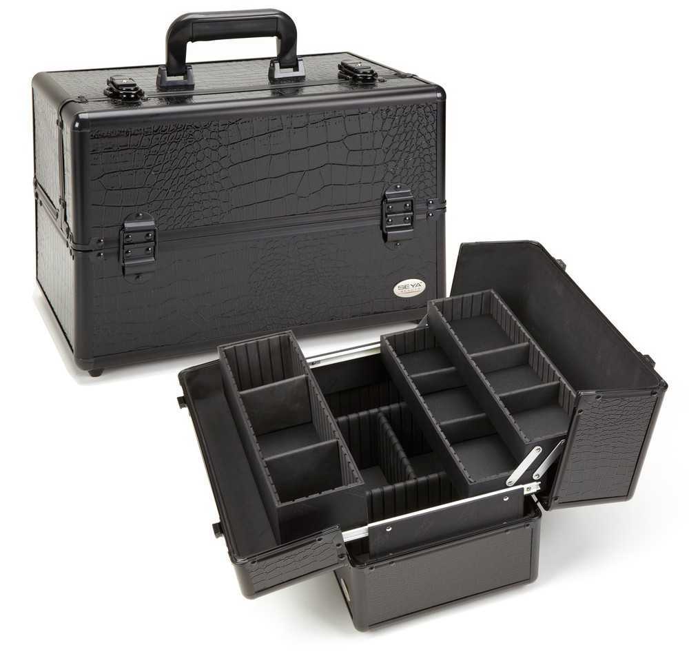 - бьюти-кейс – прямоугольная шкатулка с откидной крышкой, которая может оснащаться мобильным органайзером, позволяющим удобно расположить хранящиеся аксессуары;