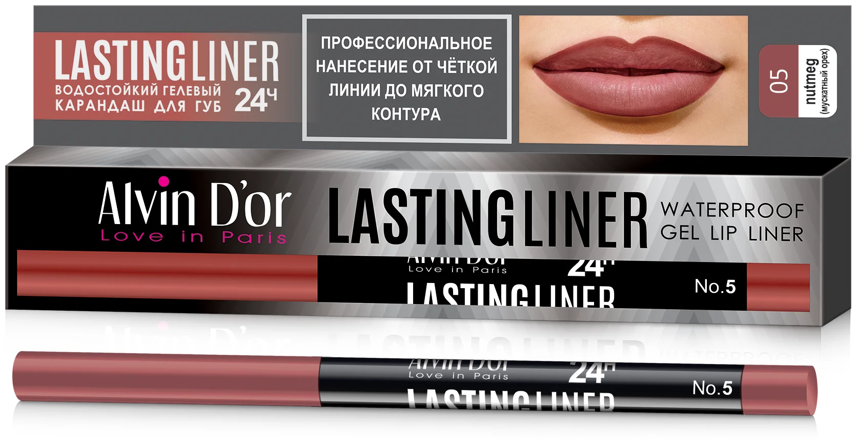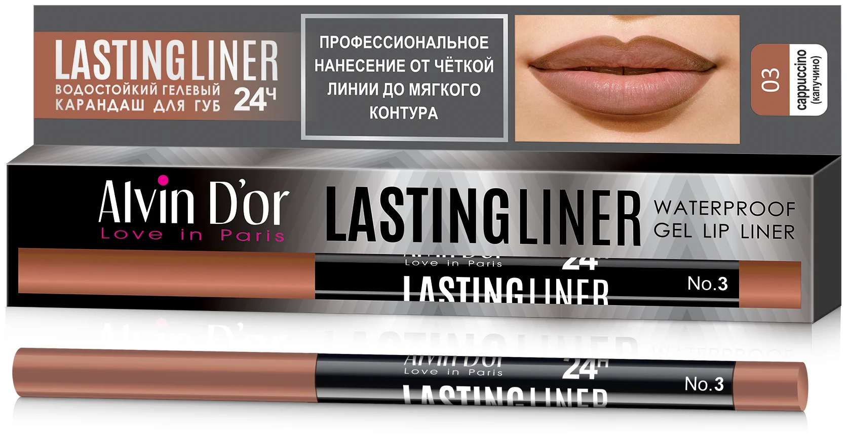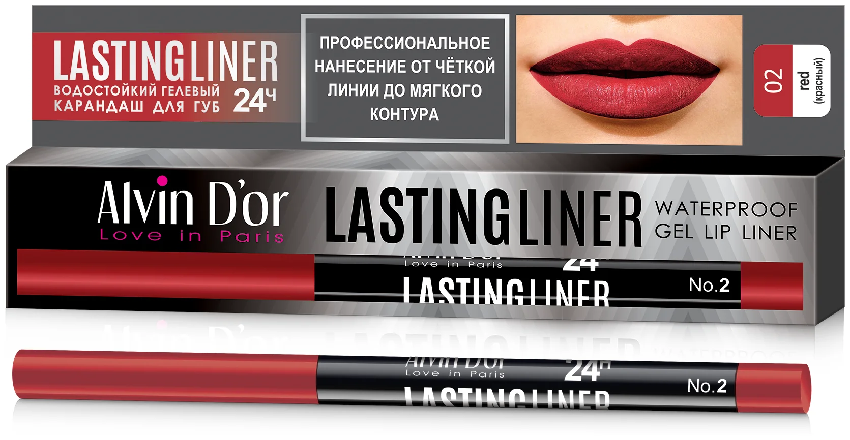 Любимый лайнер профессионалов и любителей. Отличается относительно невысокой стоимостью и водостойкими характеристиками. Оснащен средней плотностью стержня и высокой степенью пигментации. За счет натуральных компонентов скользит по контуру губ, не выходя за рамки дозволенного. Держится более 12 часов и снимается исключительно мицеллярной водой. Не вызывает аллергии и раздражений.