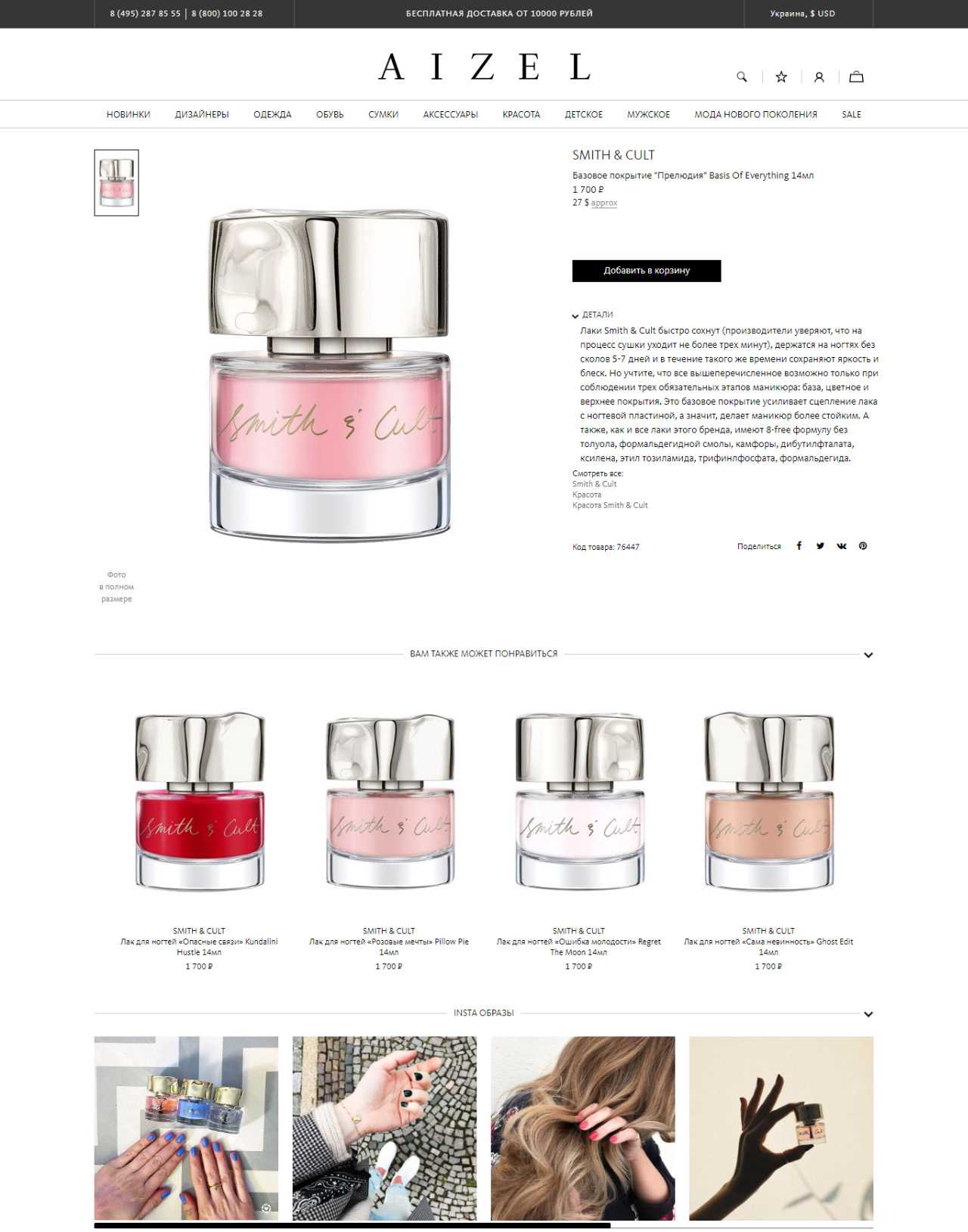 Например, карточка товара со студийной фотографией, дополненная галереей из Instagram.