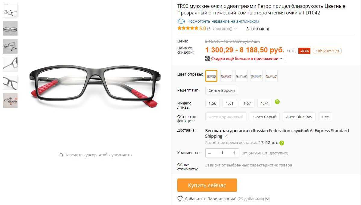 Несмотря на многотысячный ассортимент товаров на Алиэкспресс, где, кажется, можно найти все что угодно, выбор продавцов, предлагающих линзы и создание с ними очков был не очень велик. Но даже среди тех товаров, что были предложены, мы нашли немало функциональных линз, которые не только улучшали остроту зрение, но и защищали глаза от вредных факторов, имели защиту от воды и пыли и другие преимущества.