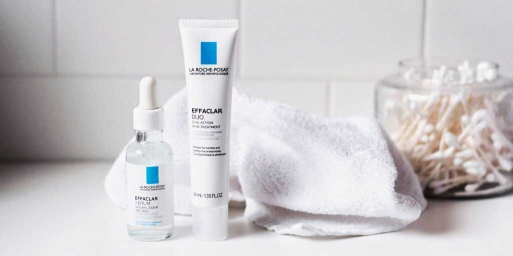 Например, лосьон Effaclar Duo Dual Action Acne Treatment для проблемной кожи содержит бензоилпероксид с обеззараживающим эффектом, кремний, активирующий синтез коллагена и эластина, то есть, омолаживающий дерму, регенерирующий эпидермис, эфир салициловой кислоты со свойствами ошелушивателя, сужающий поры, блокирующий размножение бактерий, восстанавливающий поврежденные участки. Средство обладает легкой текстурой и не содержит отдушек;