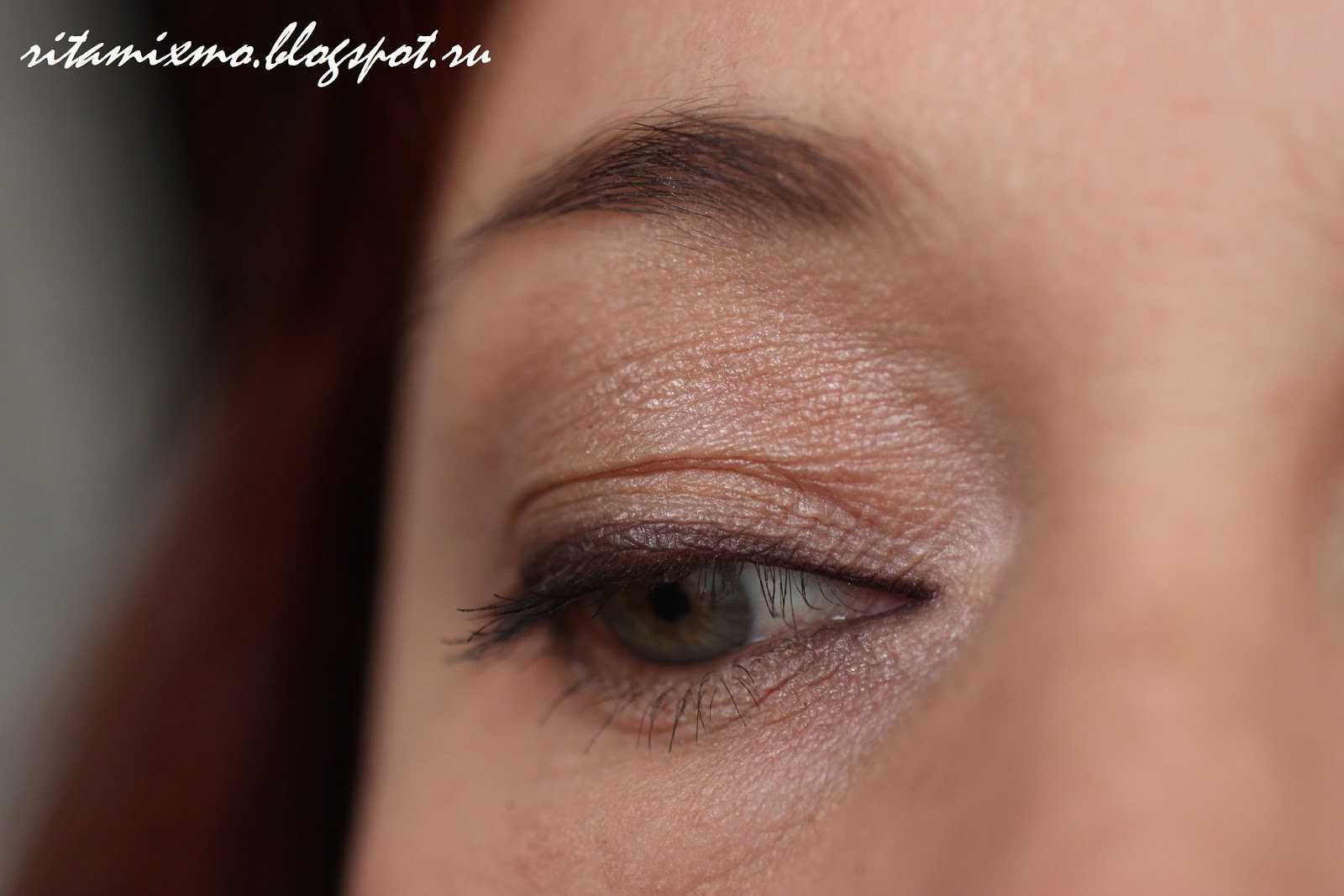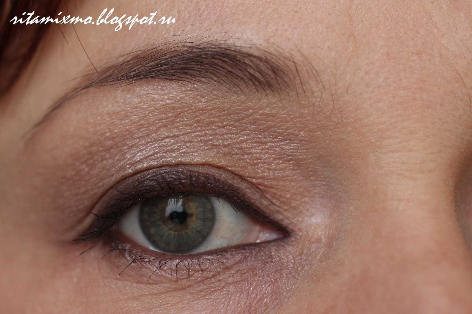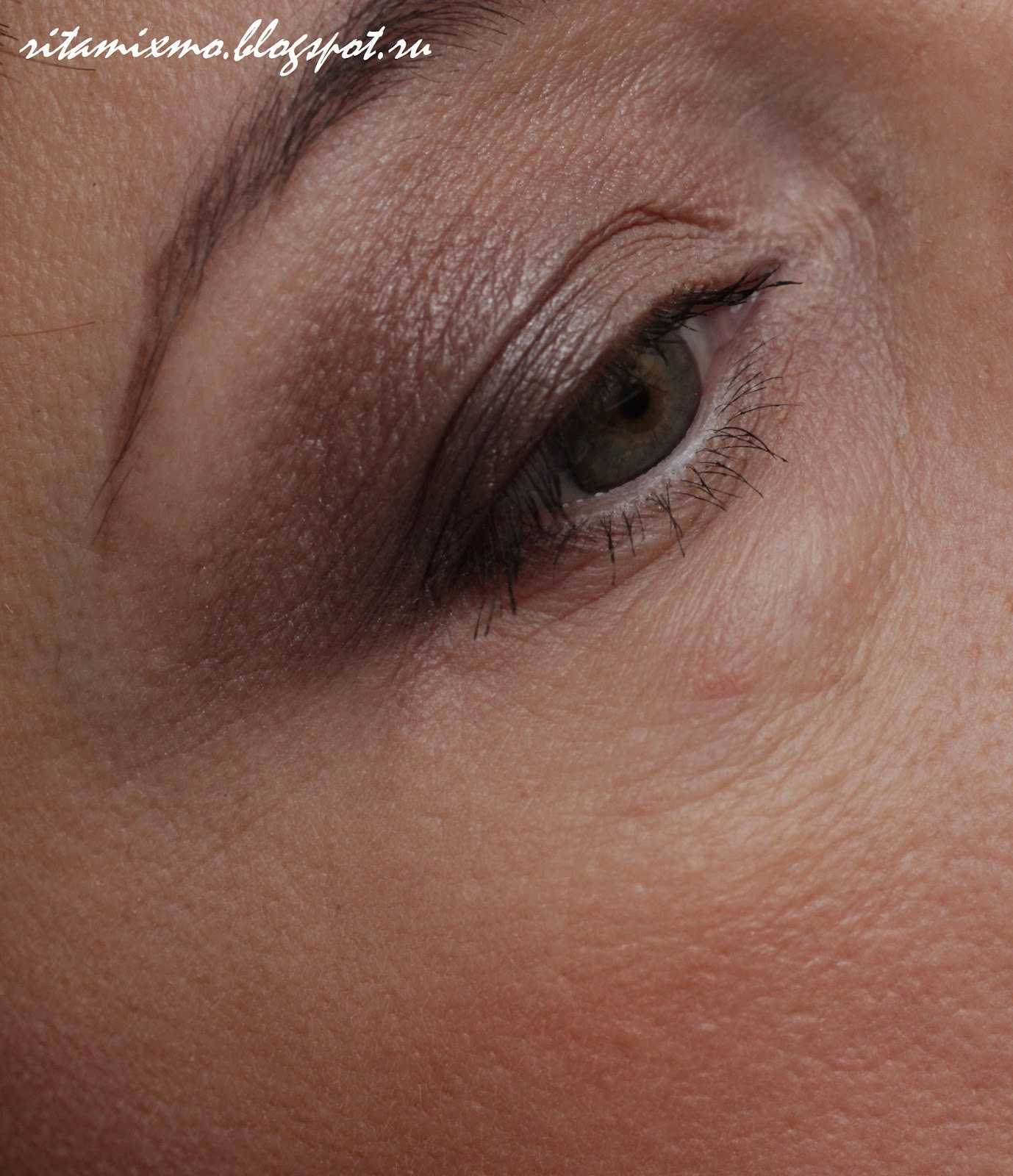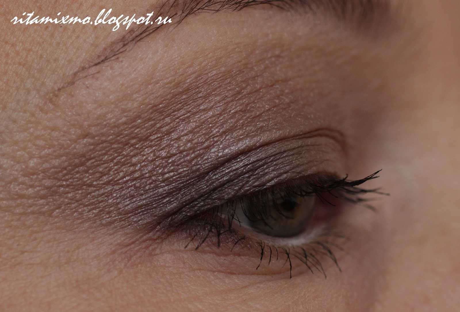 Пятый оттенок — последний — это темный горький шоколад, и пожалуй он единственный в палетке по-настоящему матовый и глухой. С его помощью отлично рисовать стрелки, причем не только влажным способом, но сухим.