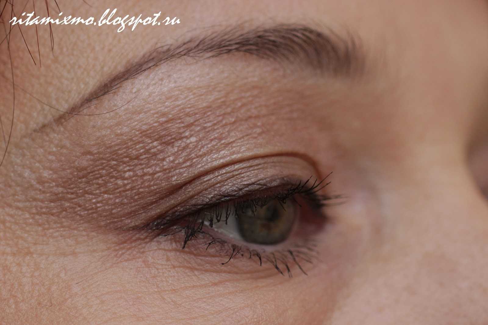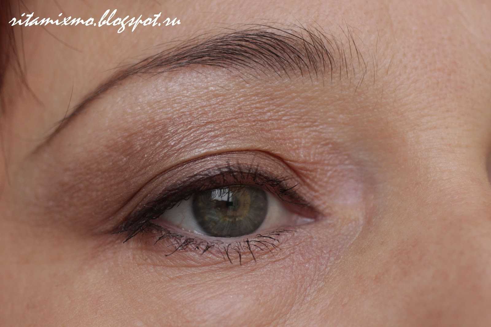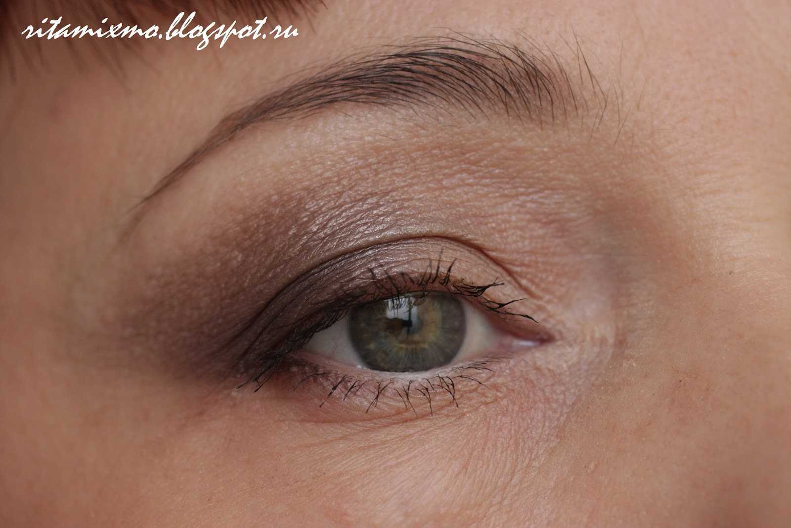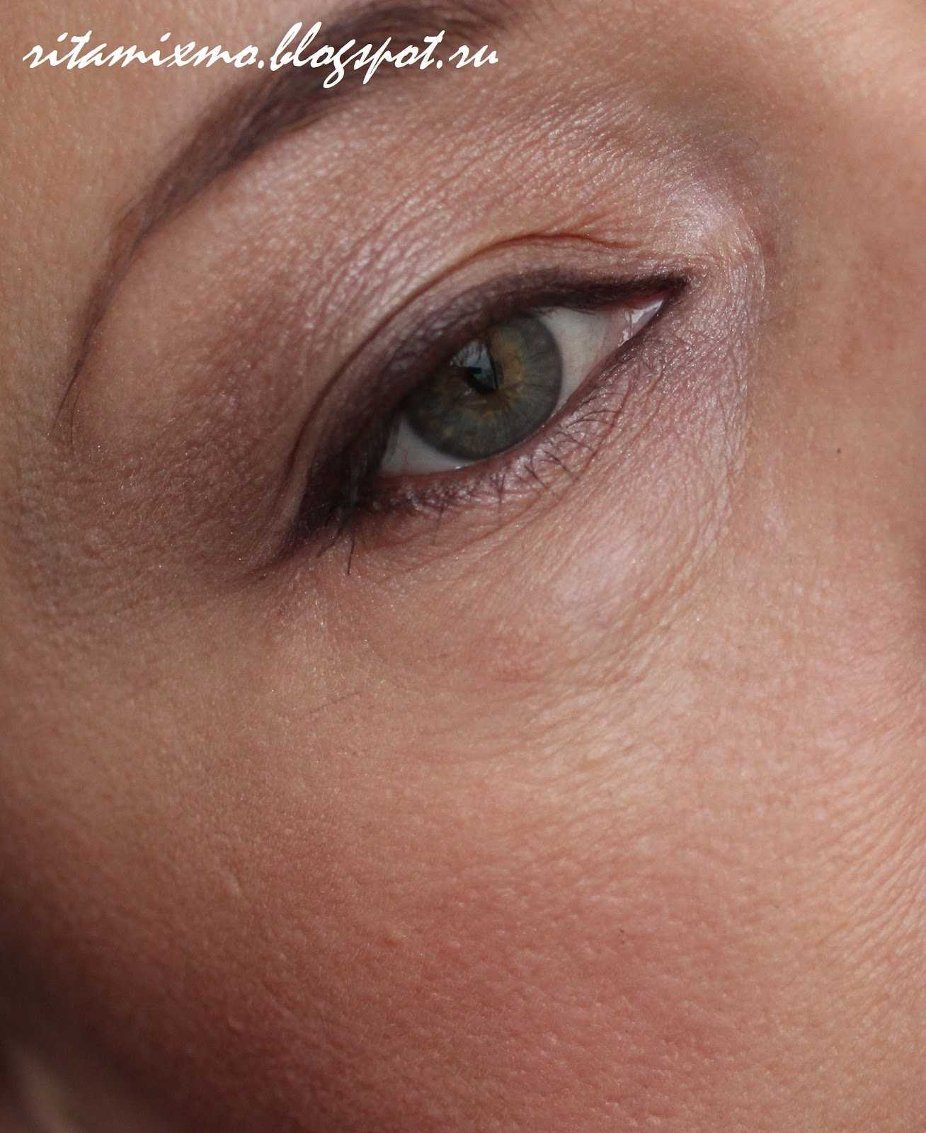 Пятый оттенок — последний — это темный горький шоколад, и пожалуй он единственный в палетке по-настоящему матовый и глухой. С его помощью отлично рисовать стрелки, причем не только влажным способом, но сухим.