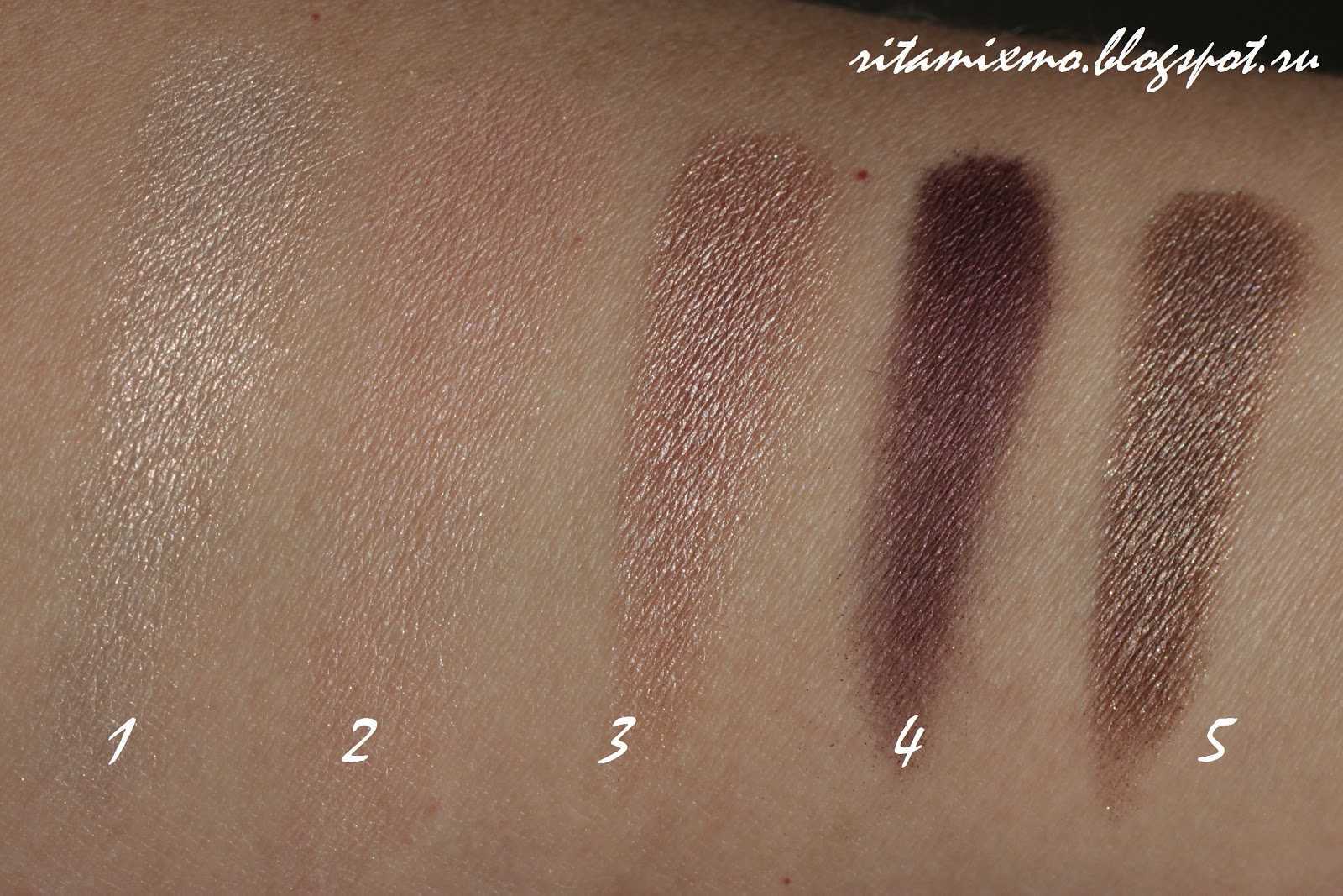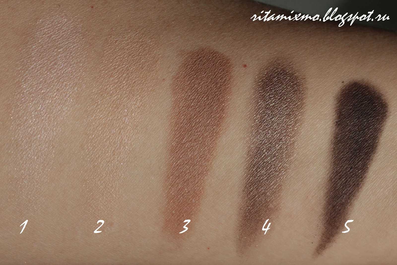 В целом, палетка очень самодостаточная. Да, в ней нет разнообразия и ярких акцентов, она спокойная, этакая рабочая лошадка, или как сейчас принято говорить — базовая. Макияжи с ней не отличаются большим разнообразием, но что удивительно, наличие пяти оттенков позволяют делать их день ото дня не похожими друг на друга.