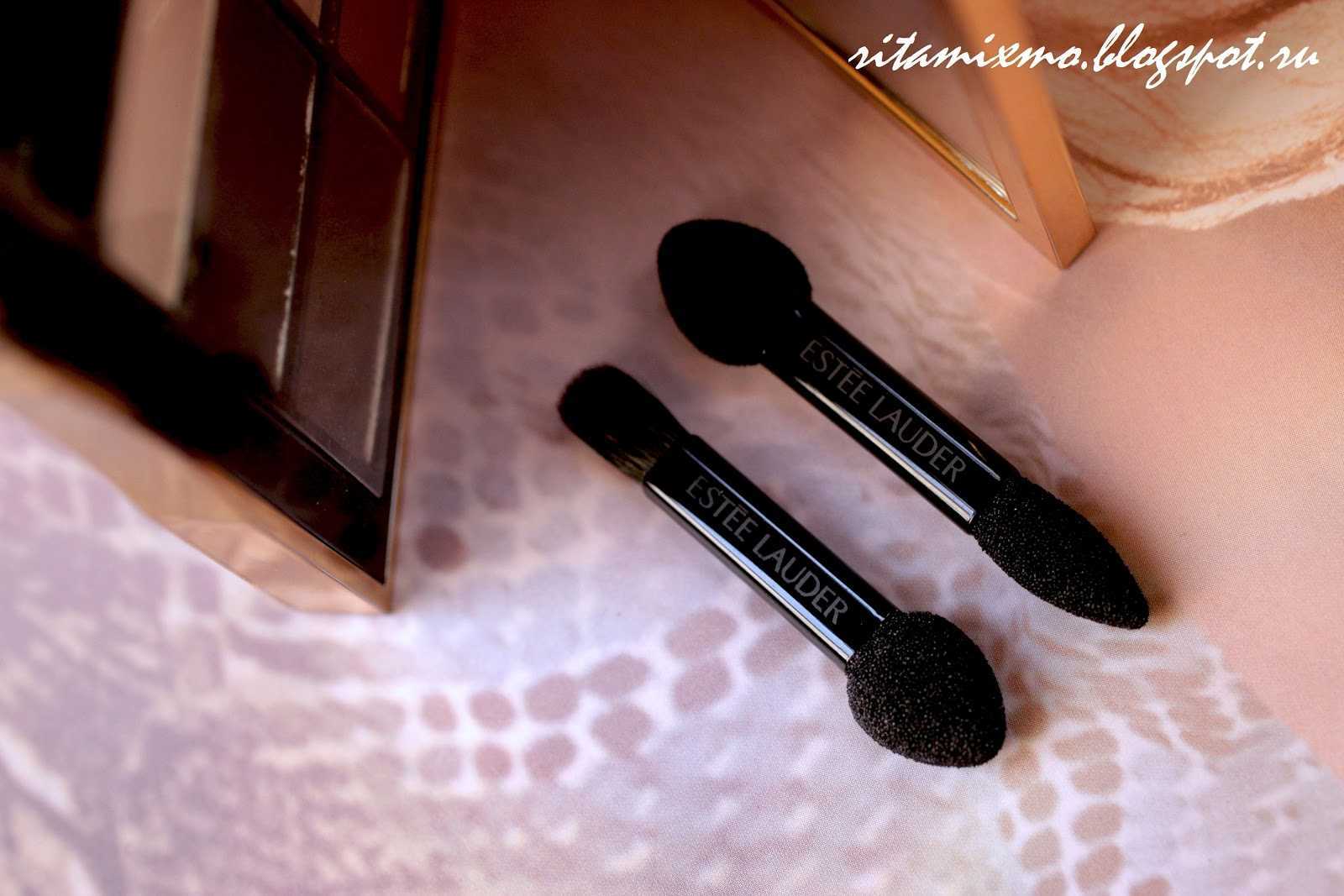 Открыв палетку, глаз не перестает радоваться — огромное зеркало, удобное расположение с правой стороны самих теней, а с левой двух спонжиков, один из которых оснащен небольшой кисточкой. Палетка распахивается на 180 градусов.