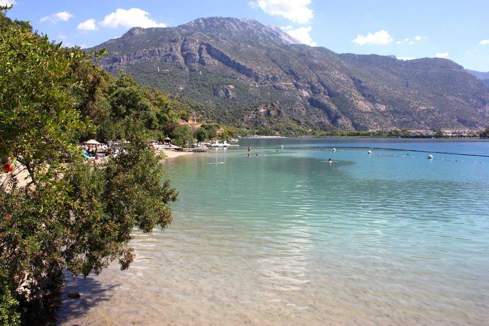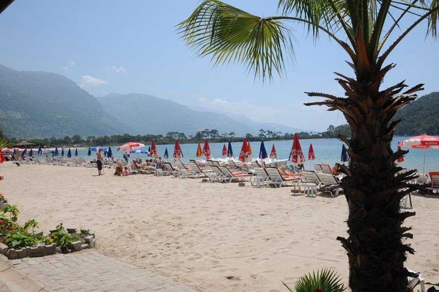 Олюдениз славится своей бирюзовой лагуной Бельджекыз, которую надежно защищает от морских ветров длинная песчаная коса. Тут и находится всемирно известный турецкий пляж под этим же названием — Бельджекыз.