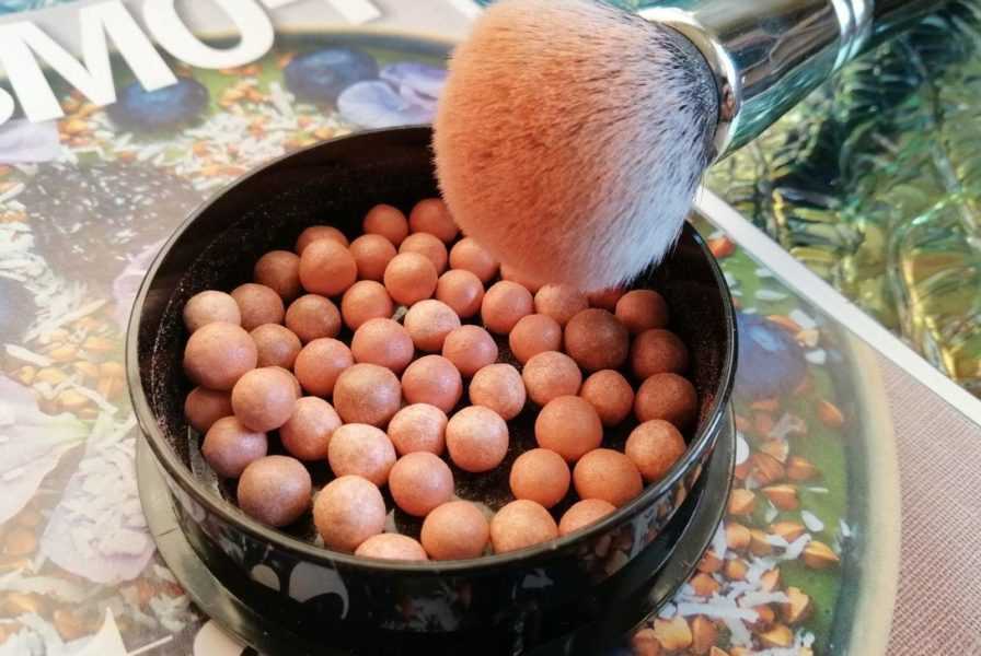 Шариковые – отличаются идеальным сочетанием оттенков. Использование жемчужин разных цветов создает на коже эффект мерцания, что делает лицо моложе и свежее. Такое нанесение скрывает все недостатки. С ними сложно переборщить, так как они набираются на кисть очень тонким слоем.