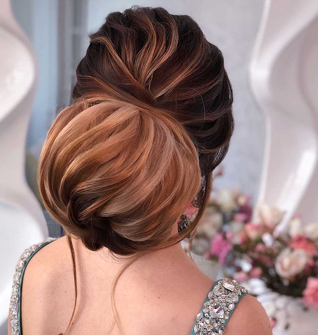 Чтобы пучок получился более пышным, длинные или средние пряди предварительно можно немного завить или начесать, но делать это нужно очень аккуратно, чтобы не повредить их.