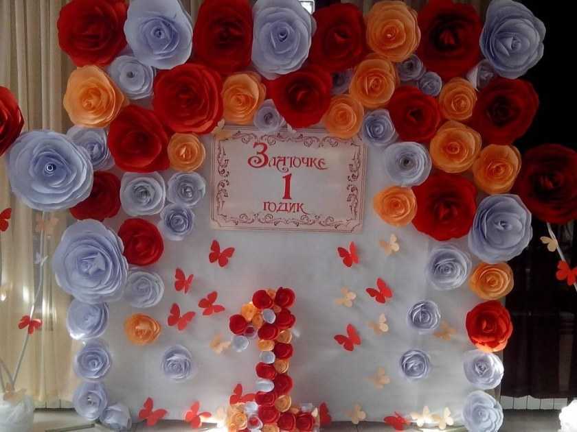 Их можно сделать из бумаги, фетра или связать крючком из ниток мулине. Или использовать гирлянды, для создания которых надо на нити приклеить бабочки, рыбки, кружочки, вырезанные из бумаги. Ещё как вариант просто подвесить много атласных лент на планку на высоте примерно двух метров.