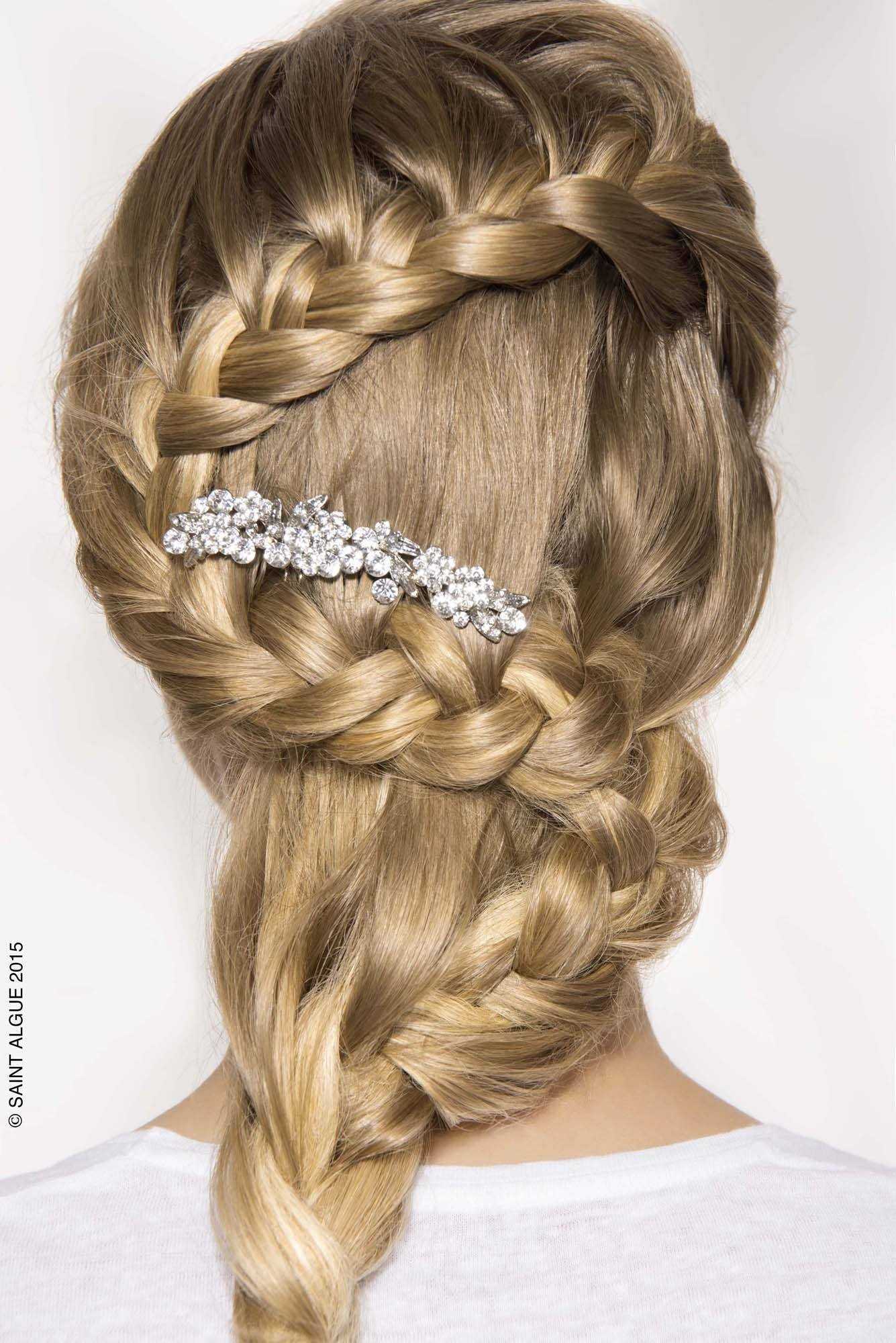 Такое плетение, как французская коса, непременно предусматривает помощь парикмахера. Для создания такой прически не нужно подкручивать волосы специальной щеткой или бигудями. Главное – чтобы волосы были чистыми и мягкими. Для придания им дополнительной пластичности можно воспользоваться после мытья бальзамом. Все волосы делятся на три части, использовать боковые локоны для создания французской косы, после чего третья часть вплетается в хвостики боковых кос. На затылке формируется красивый сложный узел. Укладку необходимо закрепить при помощи шпилек. Добавлять остальные элементы декора рекомендуется непосредственно в студии.