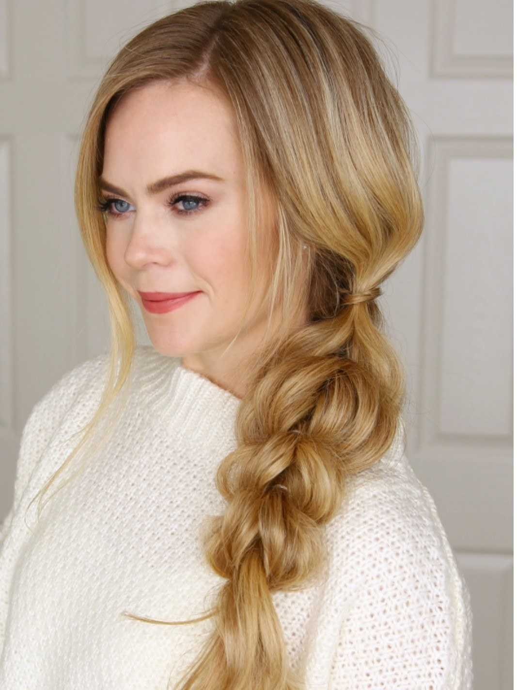 Такая прическа преобразит даже самые тонкие и редкие волосы. Если у вас не очень длинные волосы, попробуйте спрятать концы хвоста под плетение, чтобы резинки не было видно.