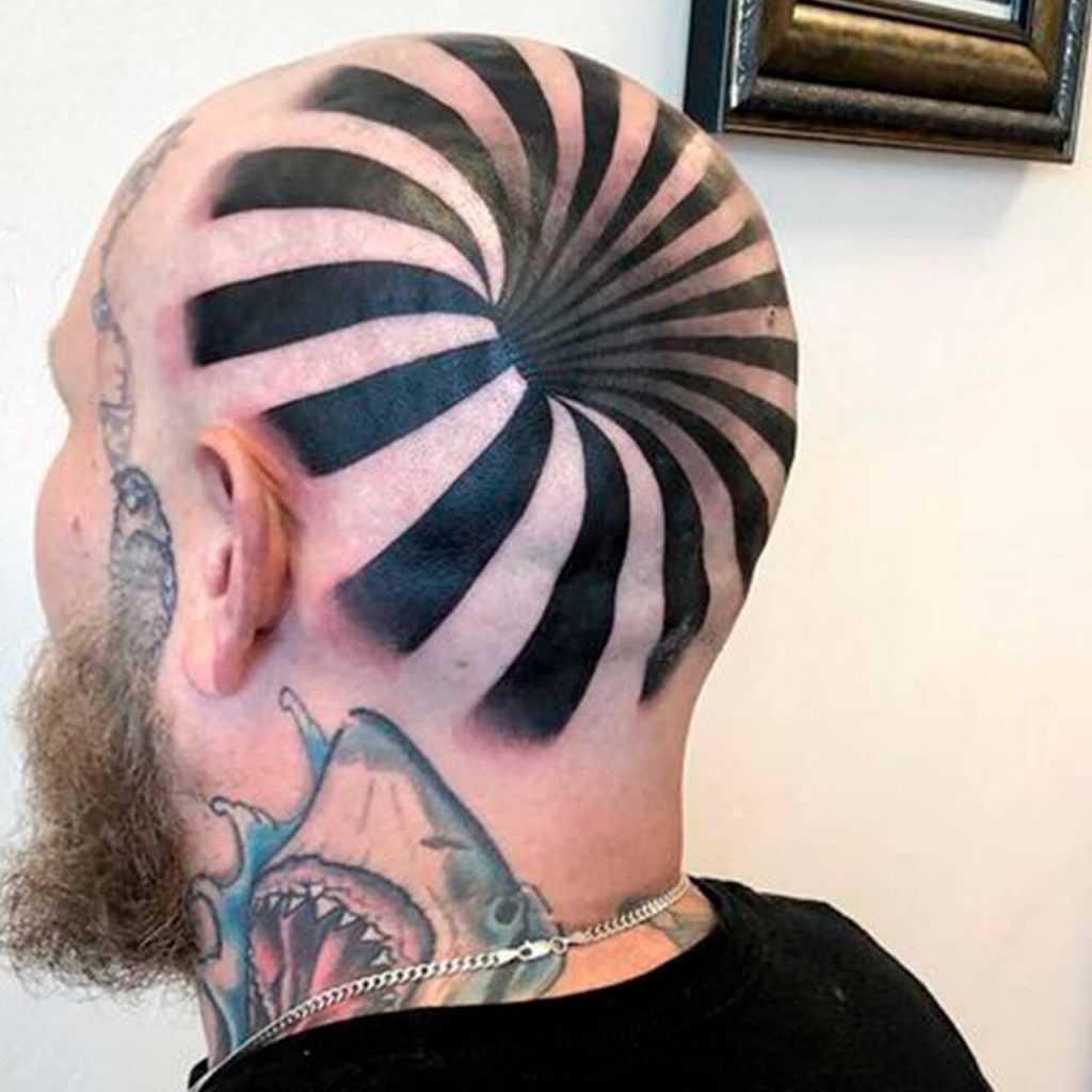 Лысая голова — отличное поле для рисунков. Можно выбрать любую часть головы — бока, затылок, темя и даже макушку. Подойдут как прямые линии, так и сложные рисунки. Главное условие — они должны быть выполнены профессионально и четко.
