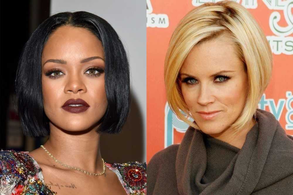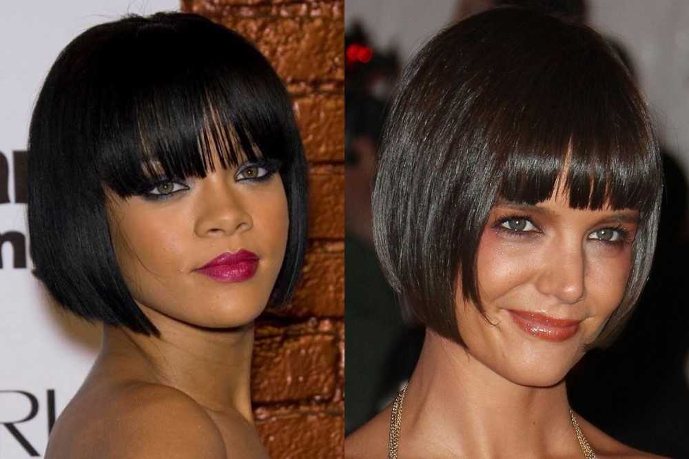 Если вы не представляете себе, что означают слова «каре с удлинением», найдите фото певицы Рианны, где косой пробор разделяет ее волосы на две части по обеим сторонам лица, без челки, причем, передние пряди с их острыми «углами» касаются плеч, а на затылке волосы короче. Звезды выбирают все только самое стильное! Не путайте с тем каре Рианны, где она с прямой челкой до самых век!