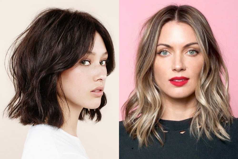 Оптимальный вариант для волос до уровня плеч — боб-каре с удлинением. Также неплохо будет смотреться классическое каре и градуированное.