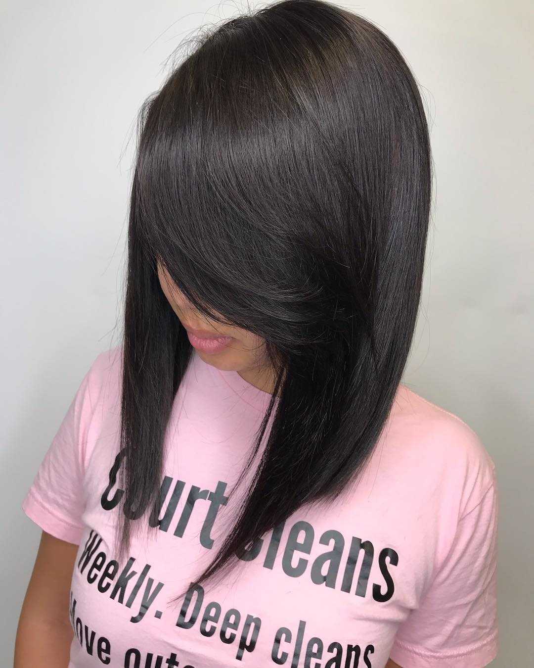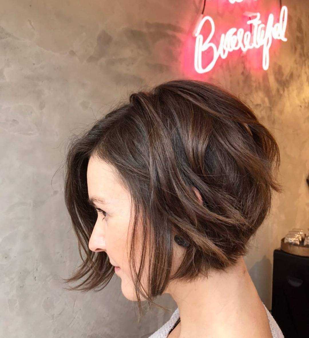 Этот стильный многослойный боб отлично смотрится с толстой челкой,