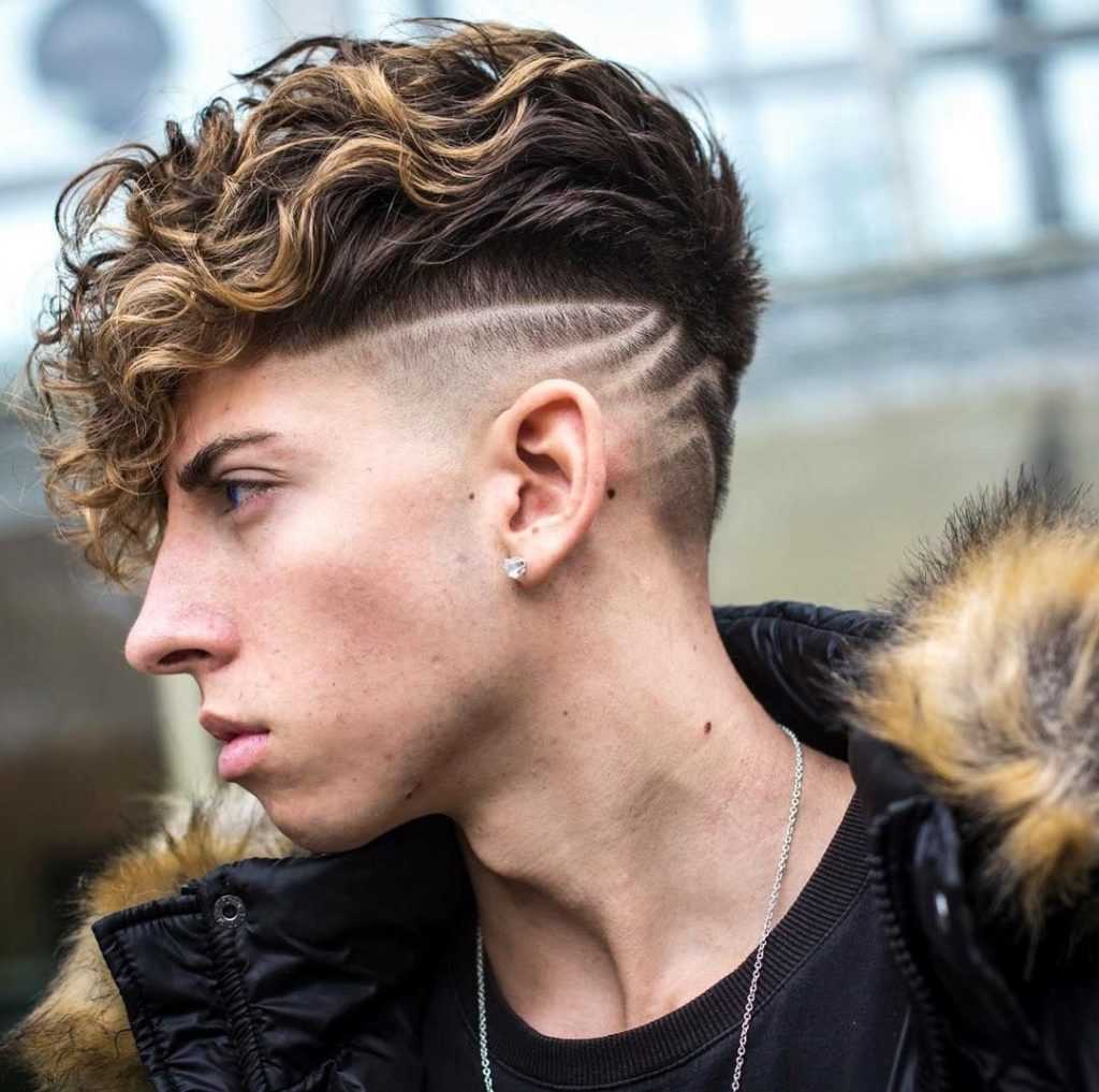 Возможно много вариантов модных причесок – от простого классического перехода длины с ровным зачесом до смелых выбритых рисунков или татуировок на висках и затылке или ирокеза.