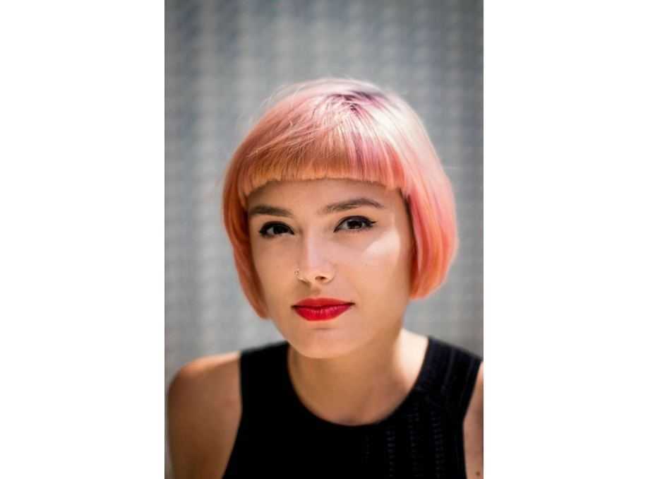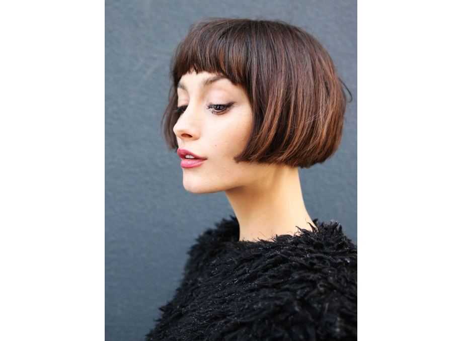 Короткая челка предъявляет особые требования к цвету волос, ресниц и бровей. Они должны быть максимально графичными и хорошо гармонировать с общей палитрой прядей. Именно поэтому коротко остриженные челки можно часто встретить на обладательницам темно-каштановых, шоколадных и черных локонов.