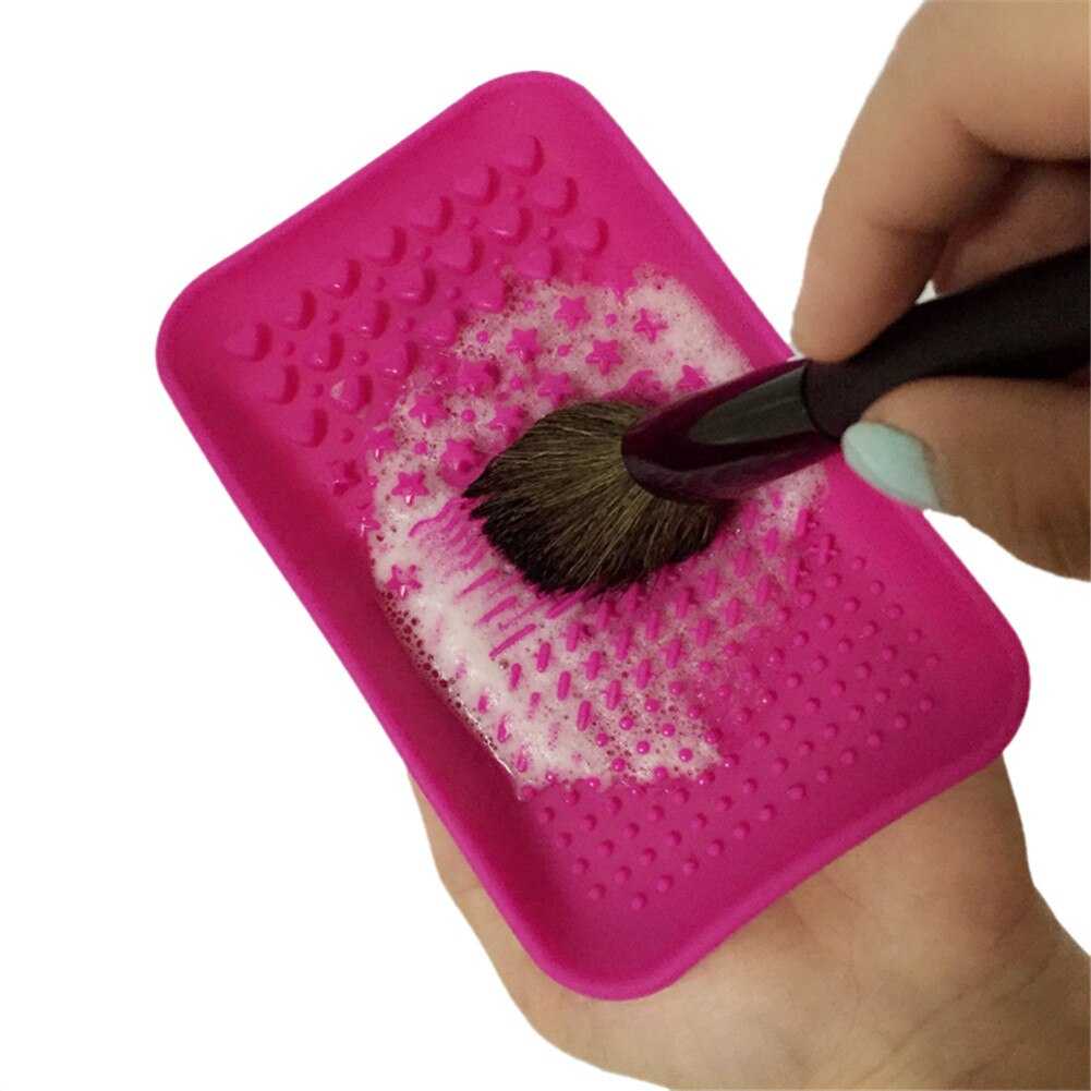 Вместо того, чтобы наносить мыло или шампунь на ладонь, можно воспользоваться силиконовым ковриком для мытья спонжей и кистей от косметики. Коврик рельефный и именно это помогает бережно, но эффективно мыть кисти даже от самого стойкого макияжа. Коврик вполне подходит для очистки кистей из натурального ворса, так из синтетического.
