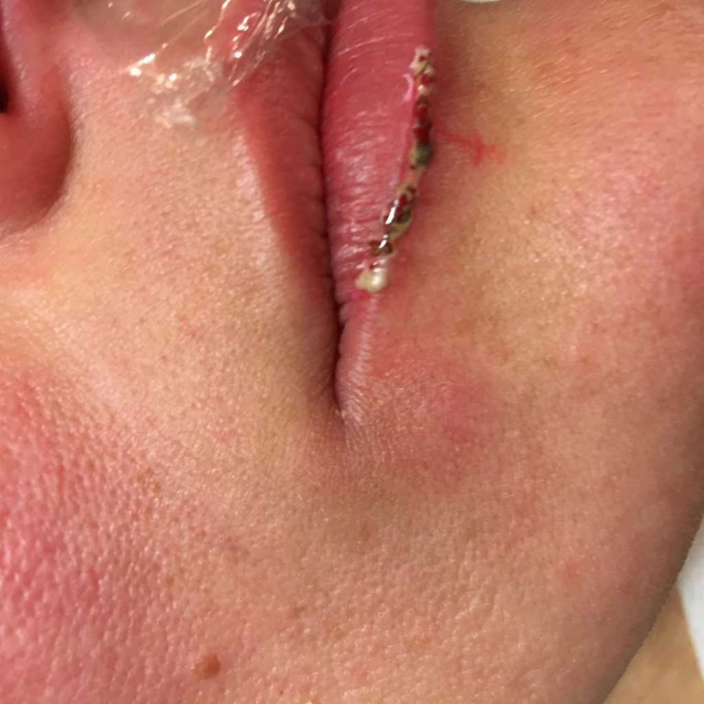 Непрофессиональное выполнение процедуры мастером, а так же неправильный уход после выведения могут послужить причиной возникновения шрамов на лице!