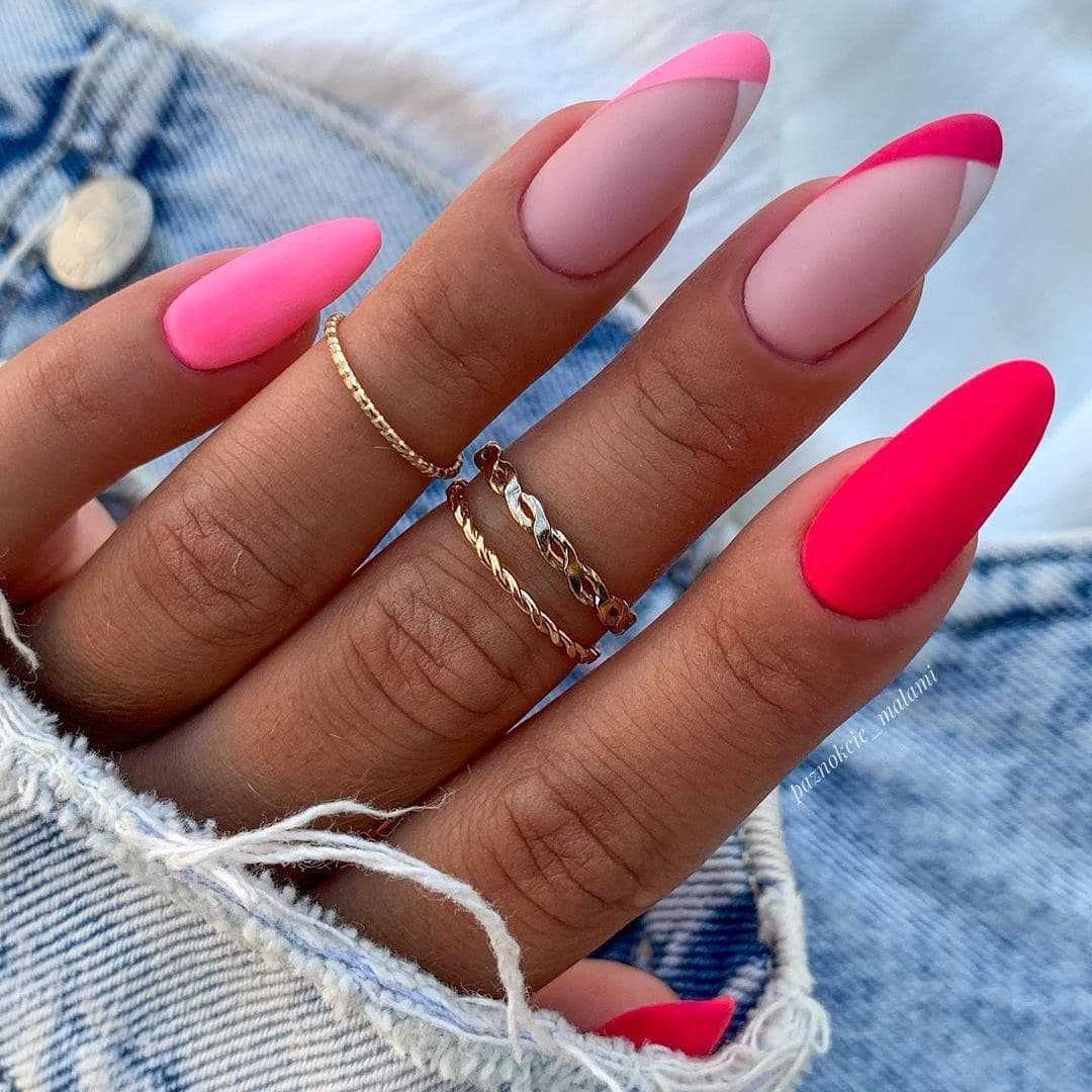 Попробуй летний френч с яркой “улыбкой” и нюдовым фоном.