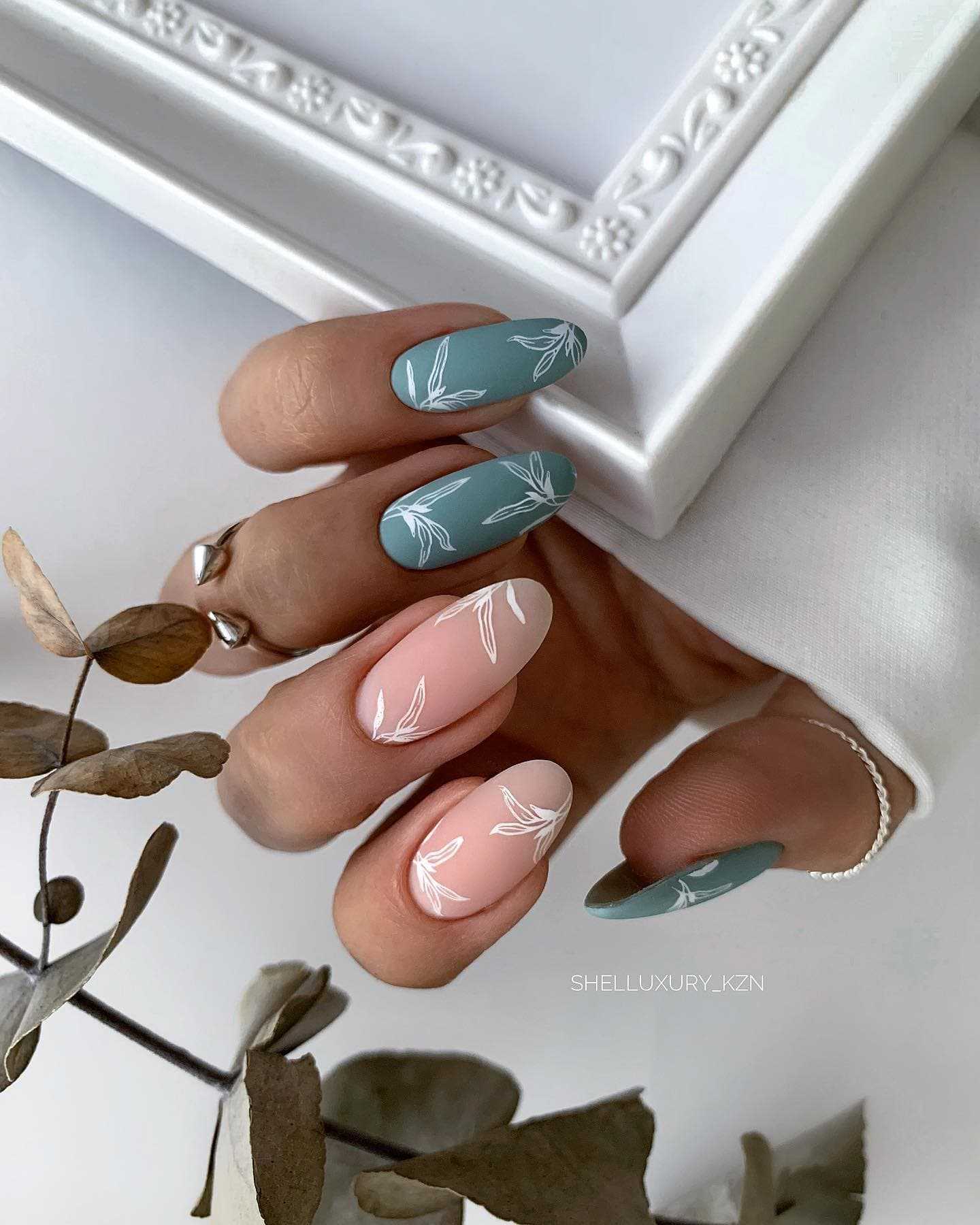 - Самый явный тренд нюдового маникюра 2022 для длинных, миндальных ногтей — рисунки и абстракции. Вовсю используем геометрию, животный принт.