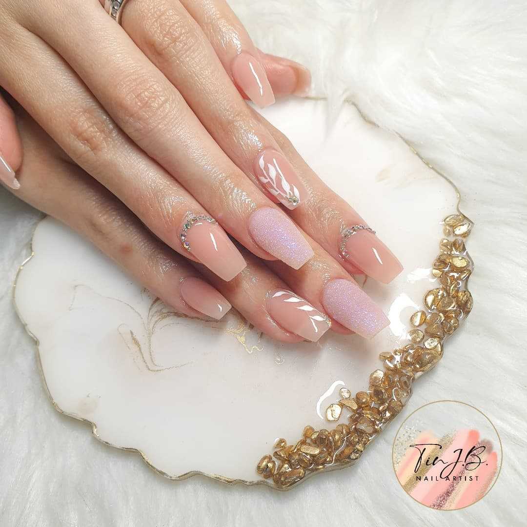 Длину дизайнеры рекомендуют среднюю или короткую (не более 2-3 миллиметров свободного кончика). Хоть шикарно украшенные длинные нюдовые ногти чрезвычайно эффектны, мода на них постепенно проходит.
