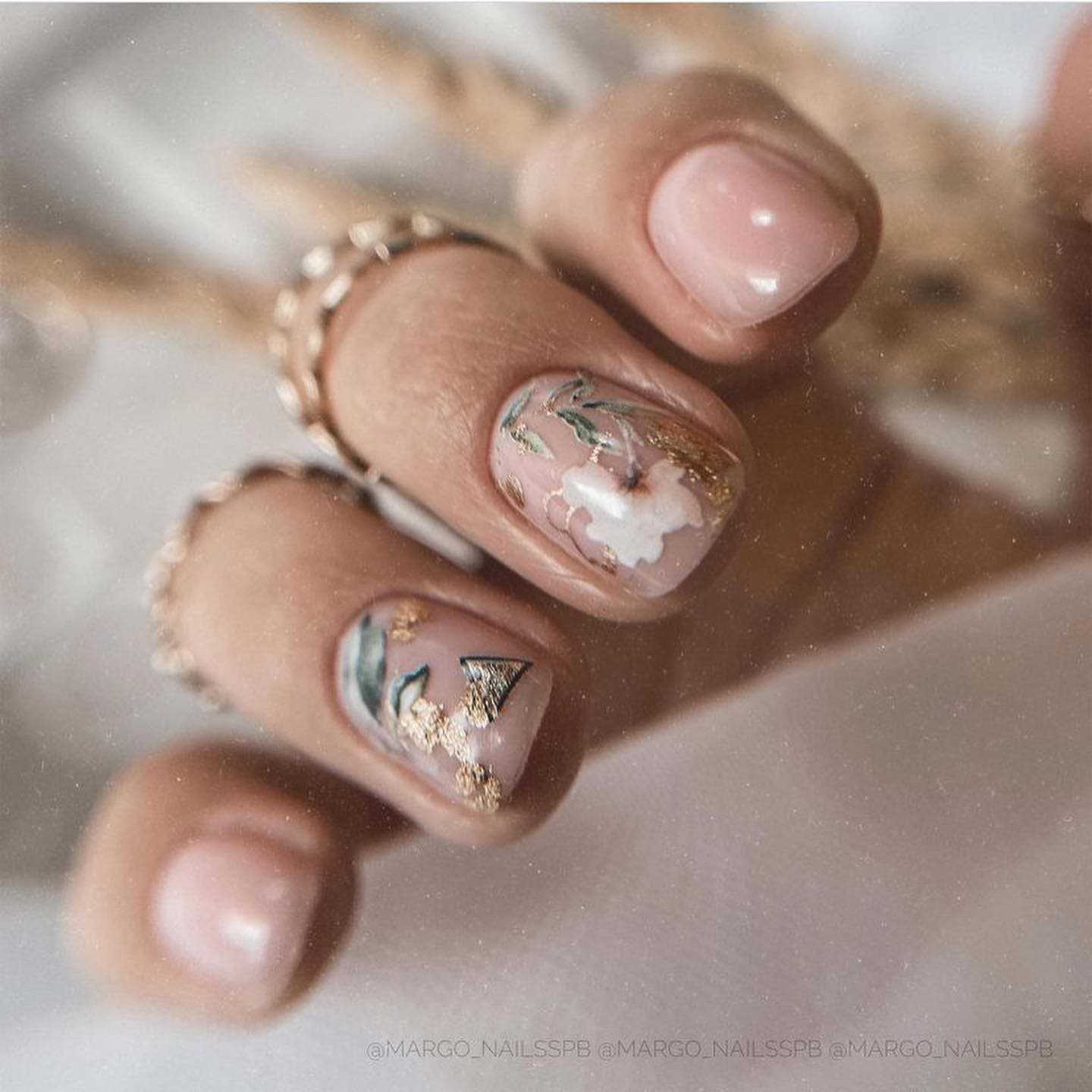 Популярность набирает декор, который идеально сочетается с натуральным цветом ногтевой пластины.
