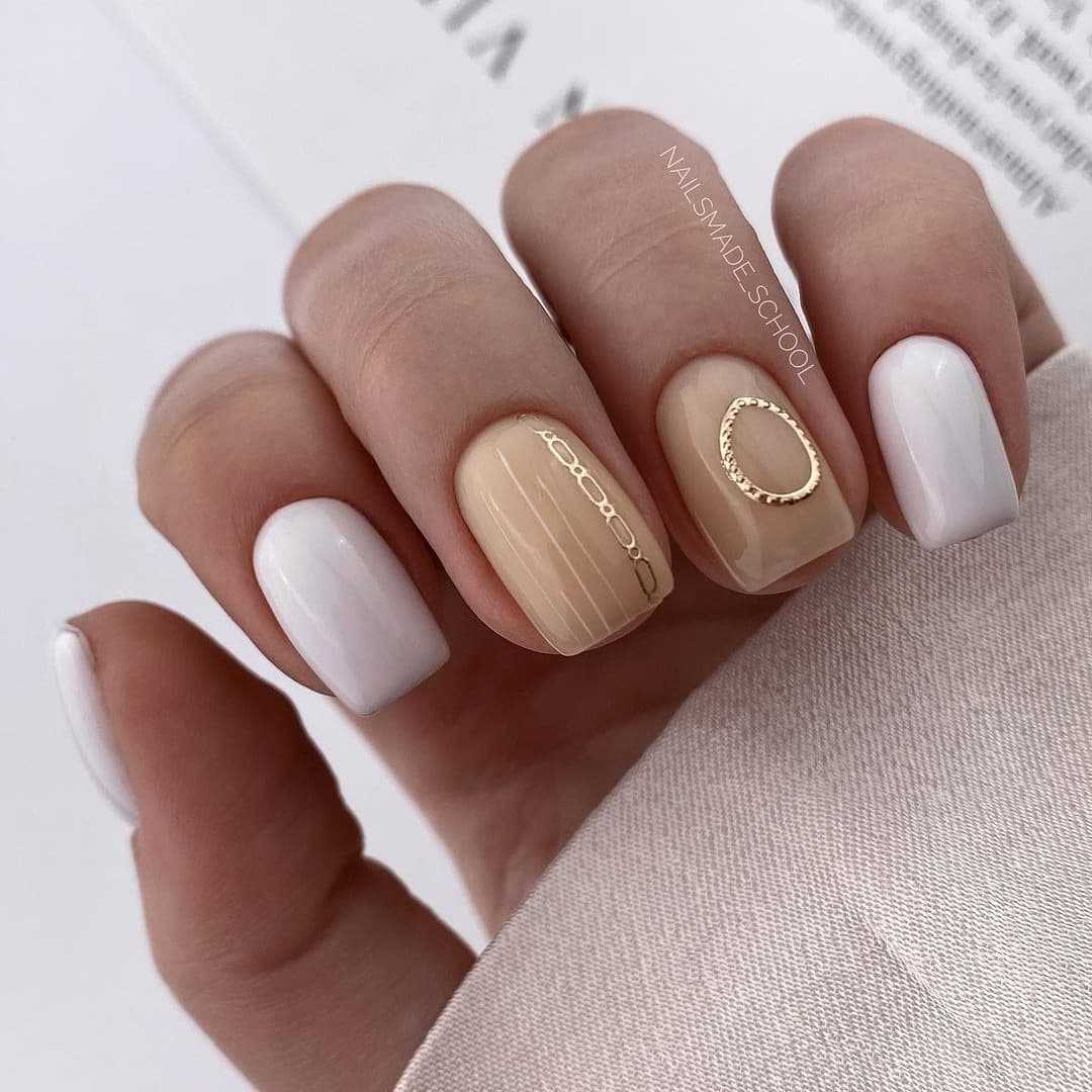 Пробуй делать разнообразные нейл-арты на бежевом фоне, а если захочется более сдержанного лука — никто не запрещал использовать только один ненавязчивый яркий элемент.
