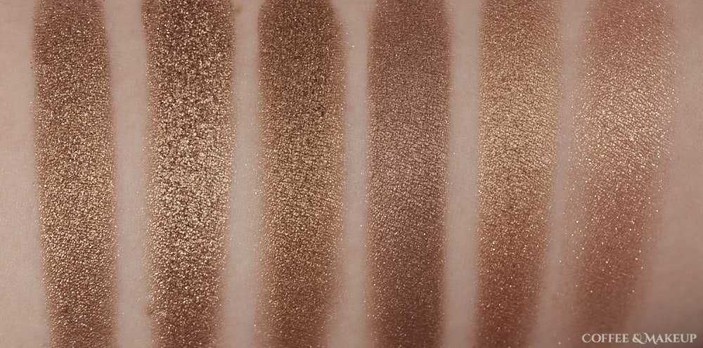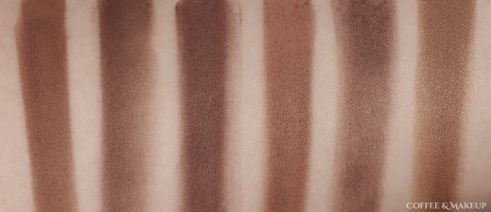 The third row of shades is very much warm toned. There is a distinct reddish undertone to these and these make for some great blending shades.