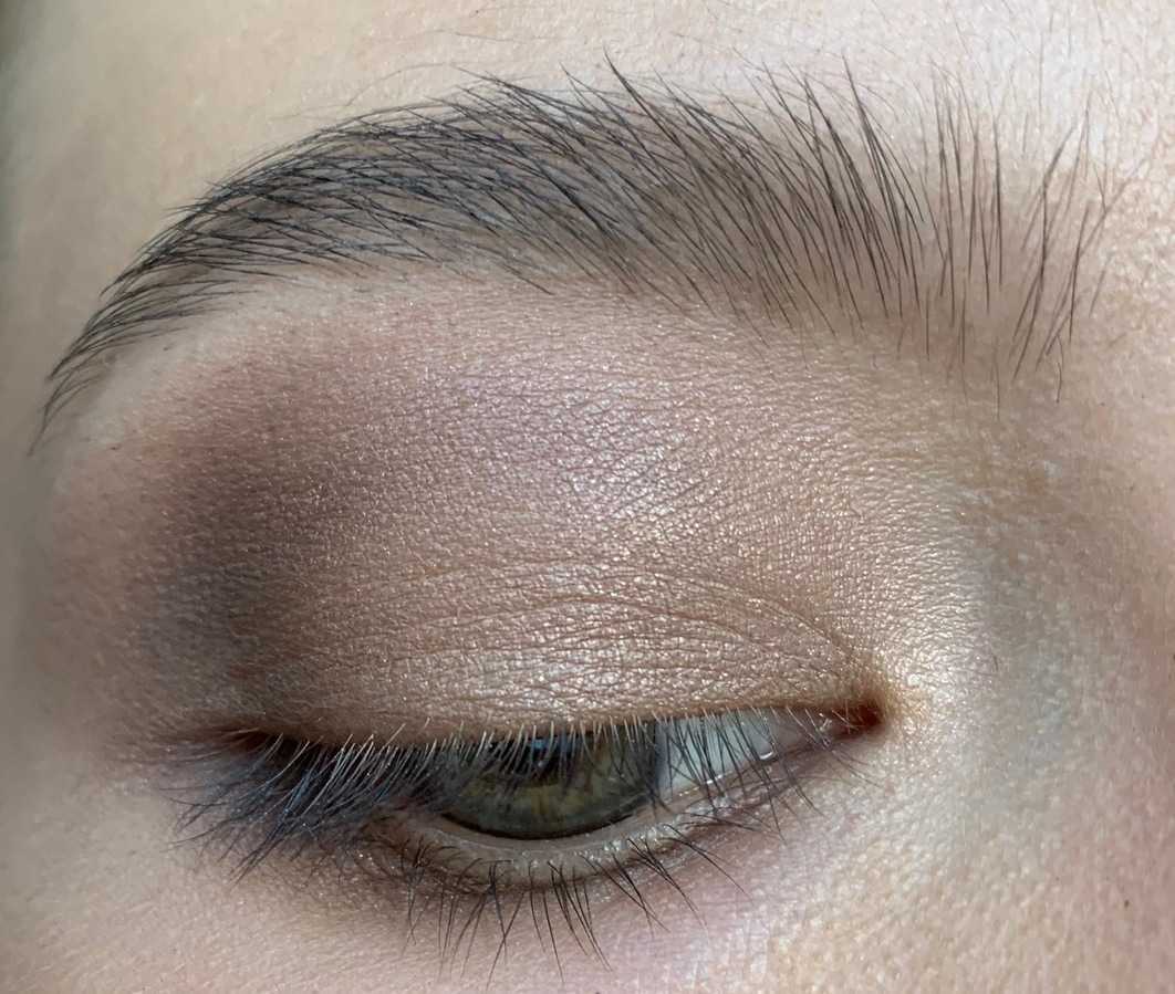 Естественный макияж тенями без лишнего утяжеления взгляда сделать довольно сложно. Поэтому в нюдовом мэйкапе лучше следовать классическим правилам: