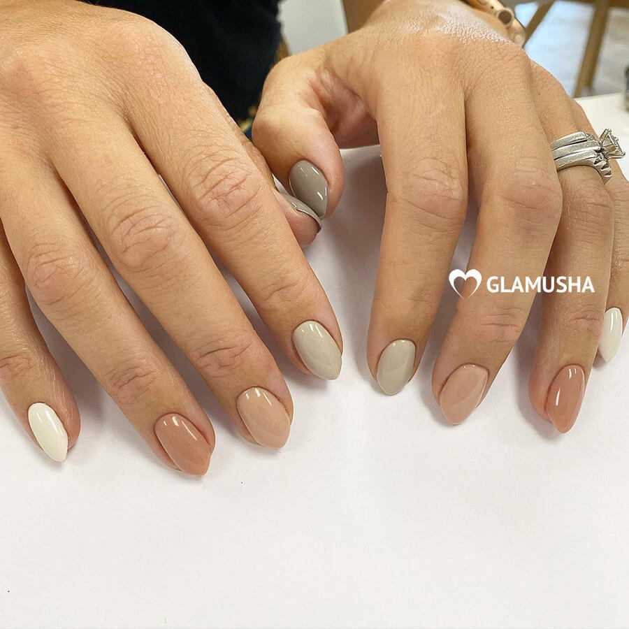 Отличительная черта этого вида маникюра — это, конечно, натуральность. Создавая такие естественные образы, мы используем спокойные цвета и их оттенки — бежевый, кремовый. Иногда также используют оттенки серого цвета или коричневого для небольшого акцента на руках.