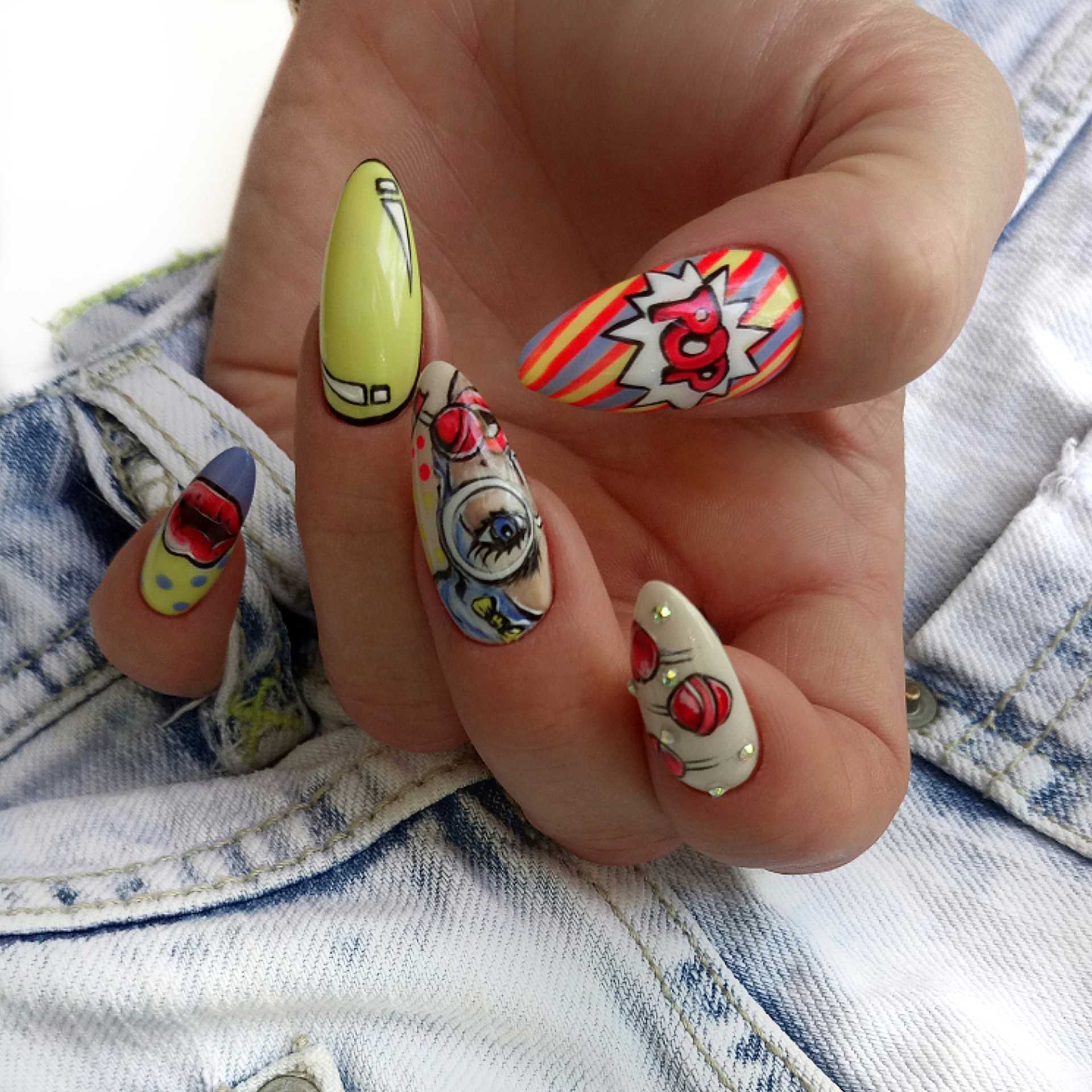 Принты в стиле поп-арт допускают использование сразу нескольких ярких оттенков.