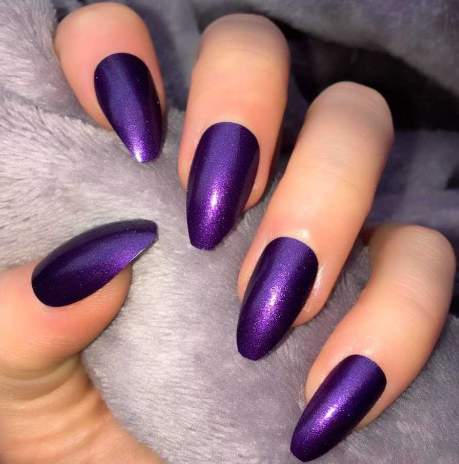Фиолетовый лак прекрасно смотрится как на темной, так и на светлой коже. Этот оттенок никогда не надоедает. Он отлично подойдет как для повседневного ношения, так и для особого образа. Этот модный цвет находится на пике популярности летнего сезона. Его можно легко сочетать с любыми аксессуарами: сумочкой, обувью, очками. Он одинаково хорошо смотрится на любой форме ногтей.