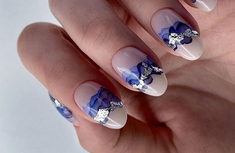 Доступная во многих цветовых решениях, фольга прекрасно впишется в любой маникюр и украсит ногти 2021-2022. Особенно интересно она будет смотреться в качестве акцента для нюдовой палитры.