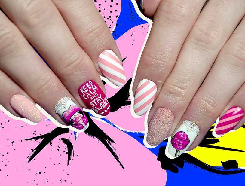 Такой дизайн вошел в моду уже давно. Он круто смотрится в любой сезон, лето — не исключение. Особенно популярен данный маникюр среди подростков и молодежи. Его легко выполнить даже дома, результат удивит любого.