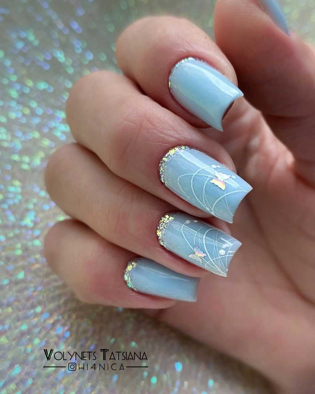 В 2021-2022 году актуальнейшим трендом останется «битое стекло» – крупные блестки, имитирующие разбитое зеркало. Полностью покрытые блестками ногти или лунный маникюр с блестящей основой, или french с мелкими блестками, а может, разноцветные крупные блестки – все, что будет ярко сверкать в приглушенном, вечернем свете – идеально впишется в атмосферу любого праздника.