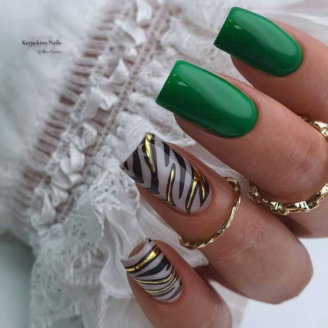 Зеленый еще один модный цвет лета 2022. Он повсюду — в одежде, аксессуарах и конечно же на ногтях.