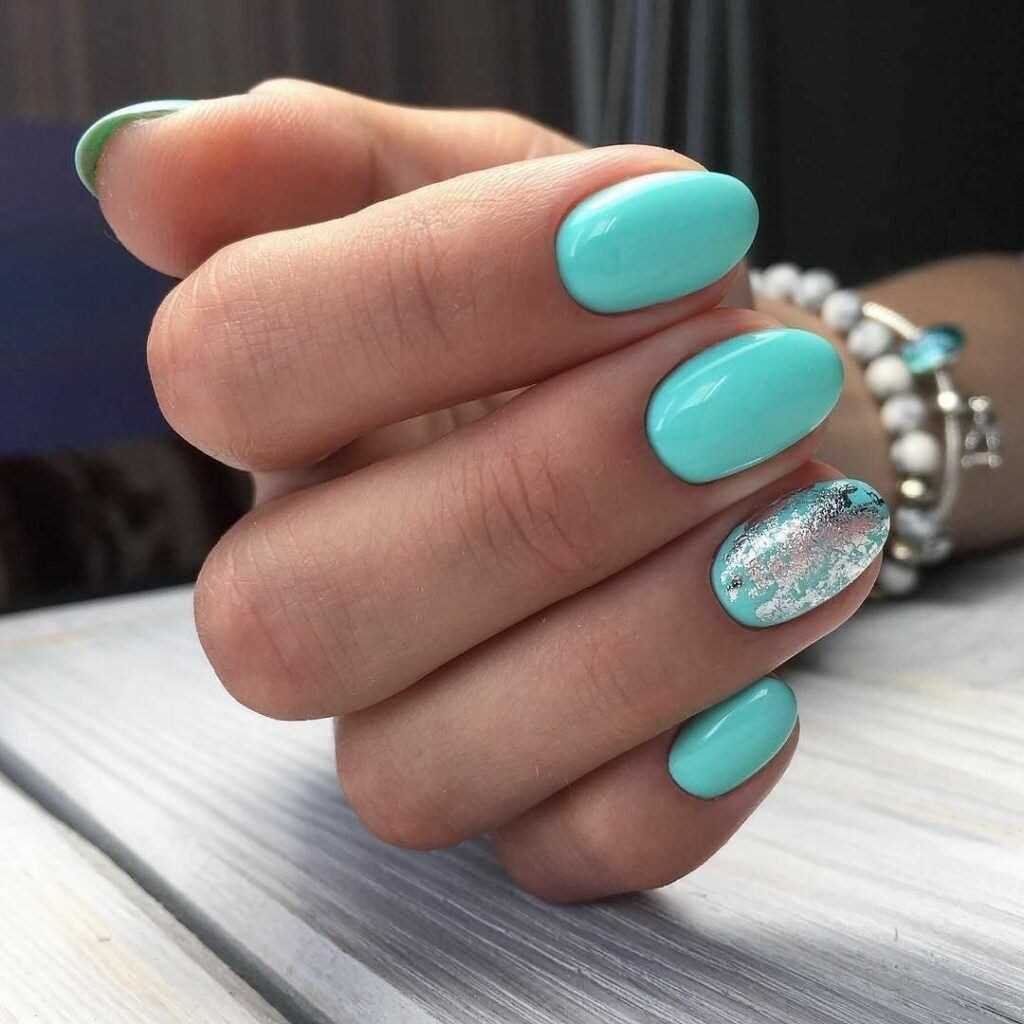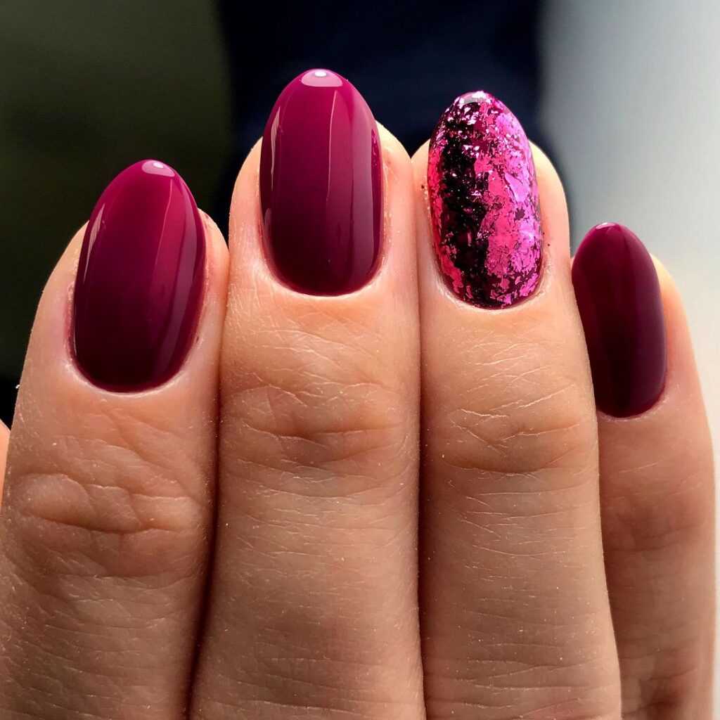 Яркий цвет идеально смотрится с золотом. С золотой фольгой легко создавать уникальный, но простой дизайн. Золотая фольга на акцентном пальце — прекрасная альтернатива сложному нейл арту.