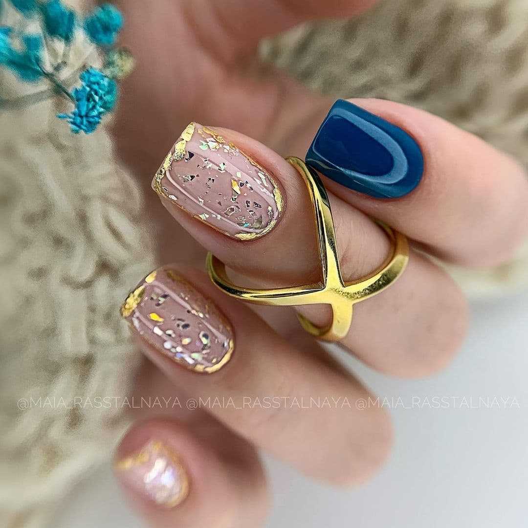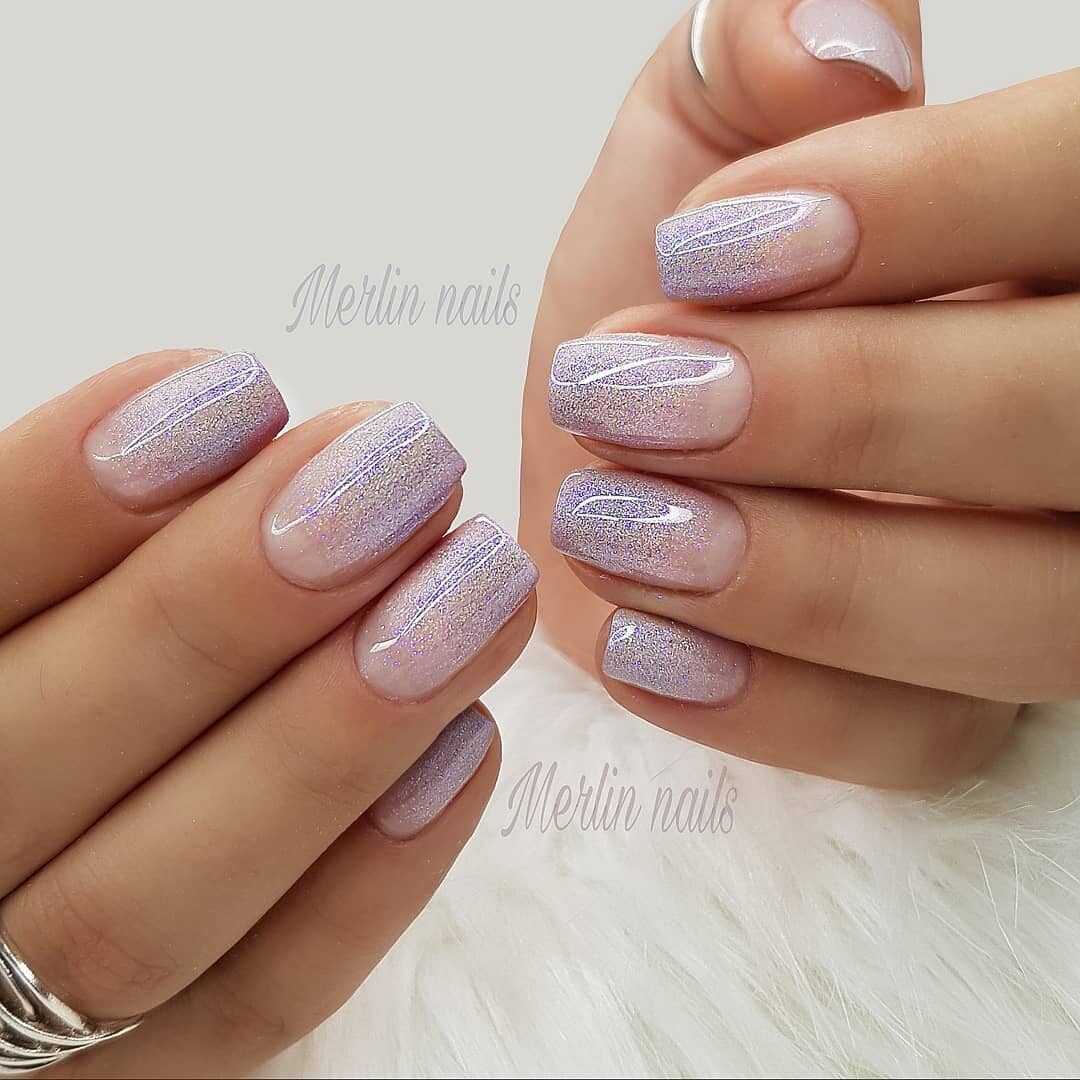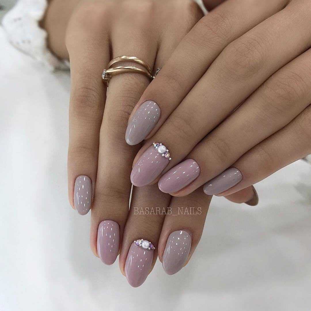 Для нюдового дизайна с глянцем используется декор из золота и серебра, яркие и матовые блестки, технику нанесения лака с градиентом и переходами.
