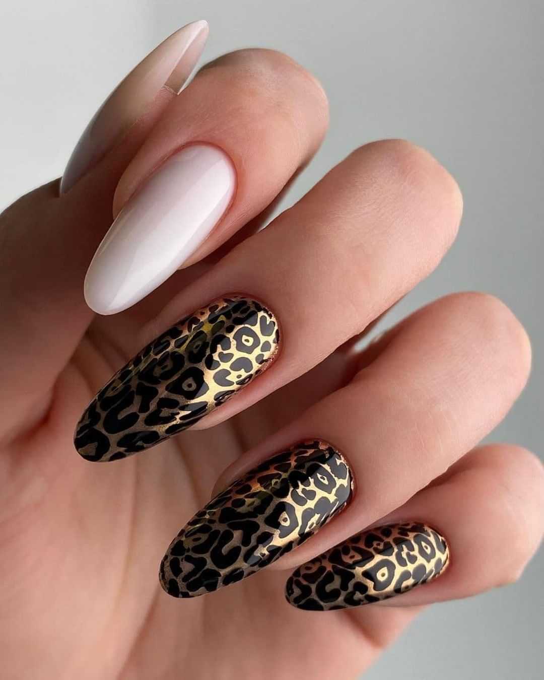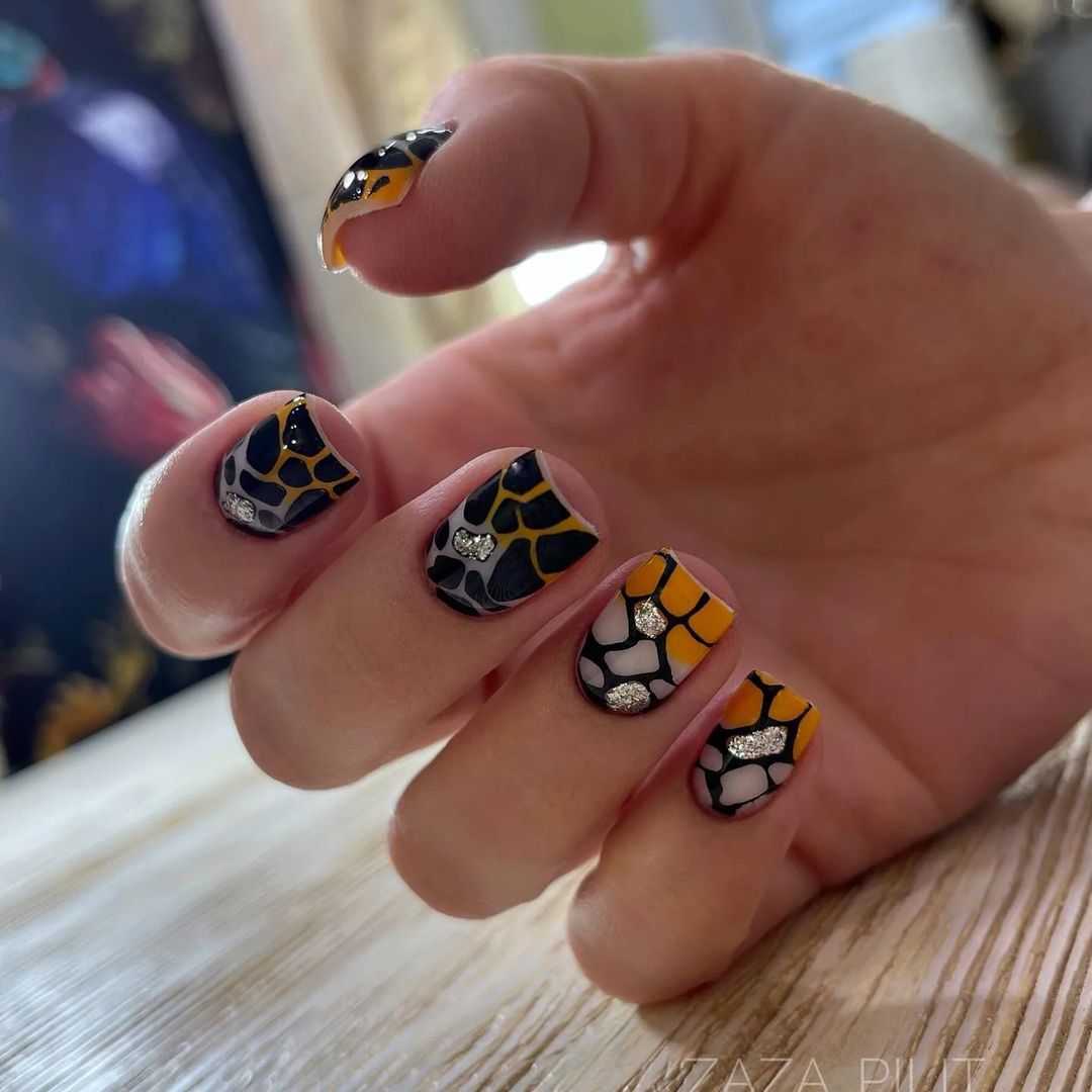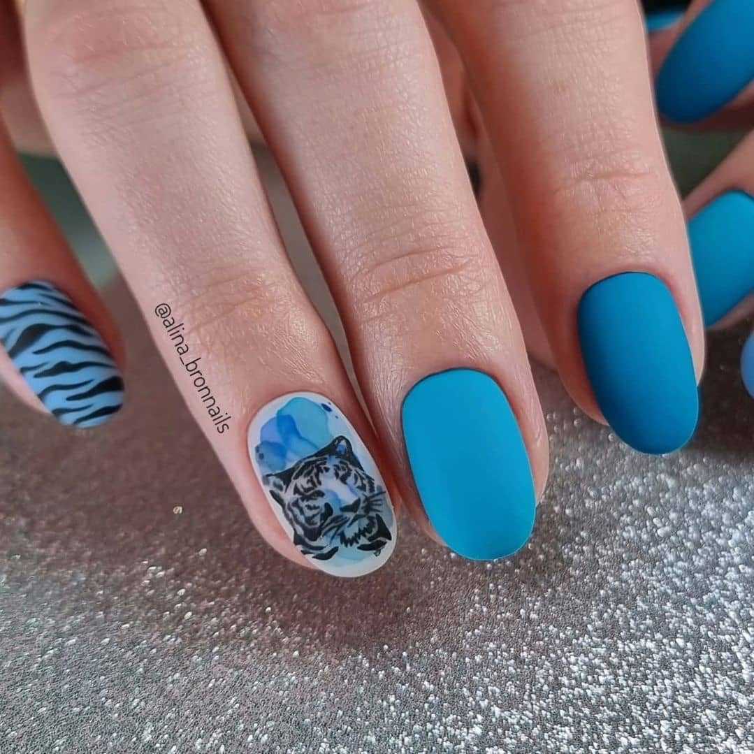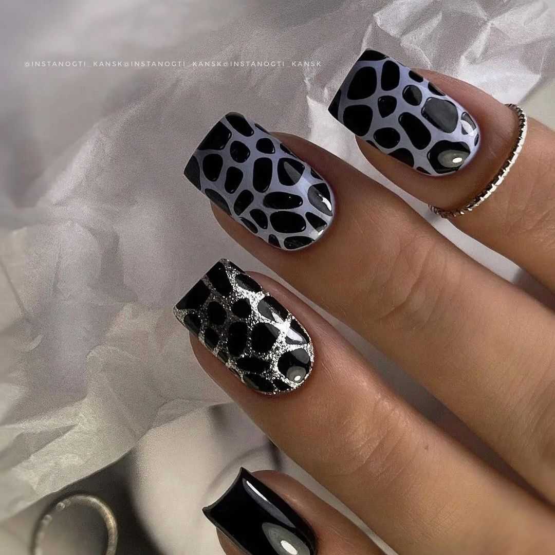 Животные принты могут быть хорошим выбором для особого случая, когда вы можете сопоставить с ними элемент одежды. Можно добавить немного другой дизайн на безымянный палец, чтобы дополнить короткие ногти и создать более изысканный вид.