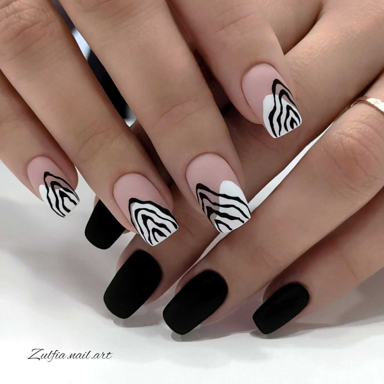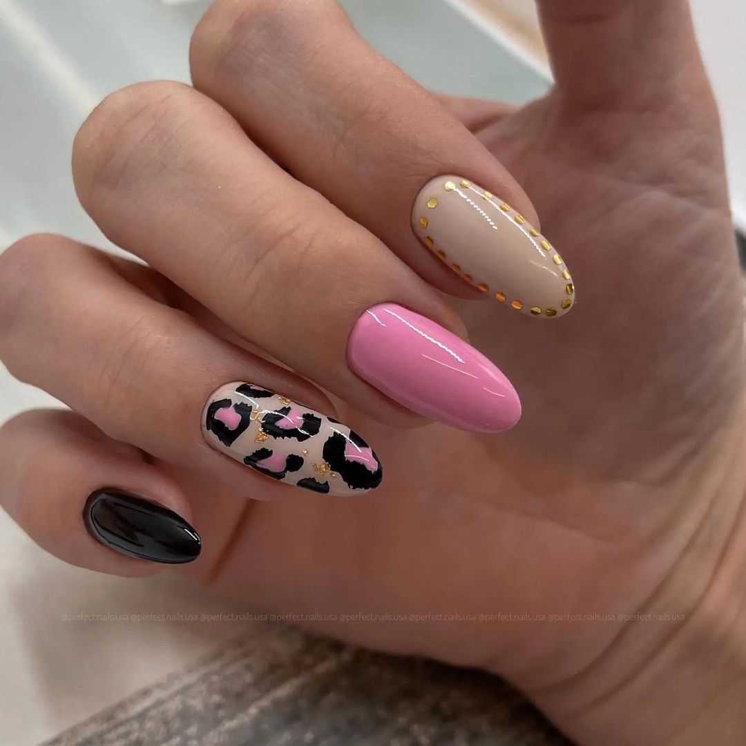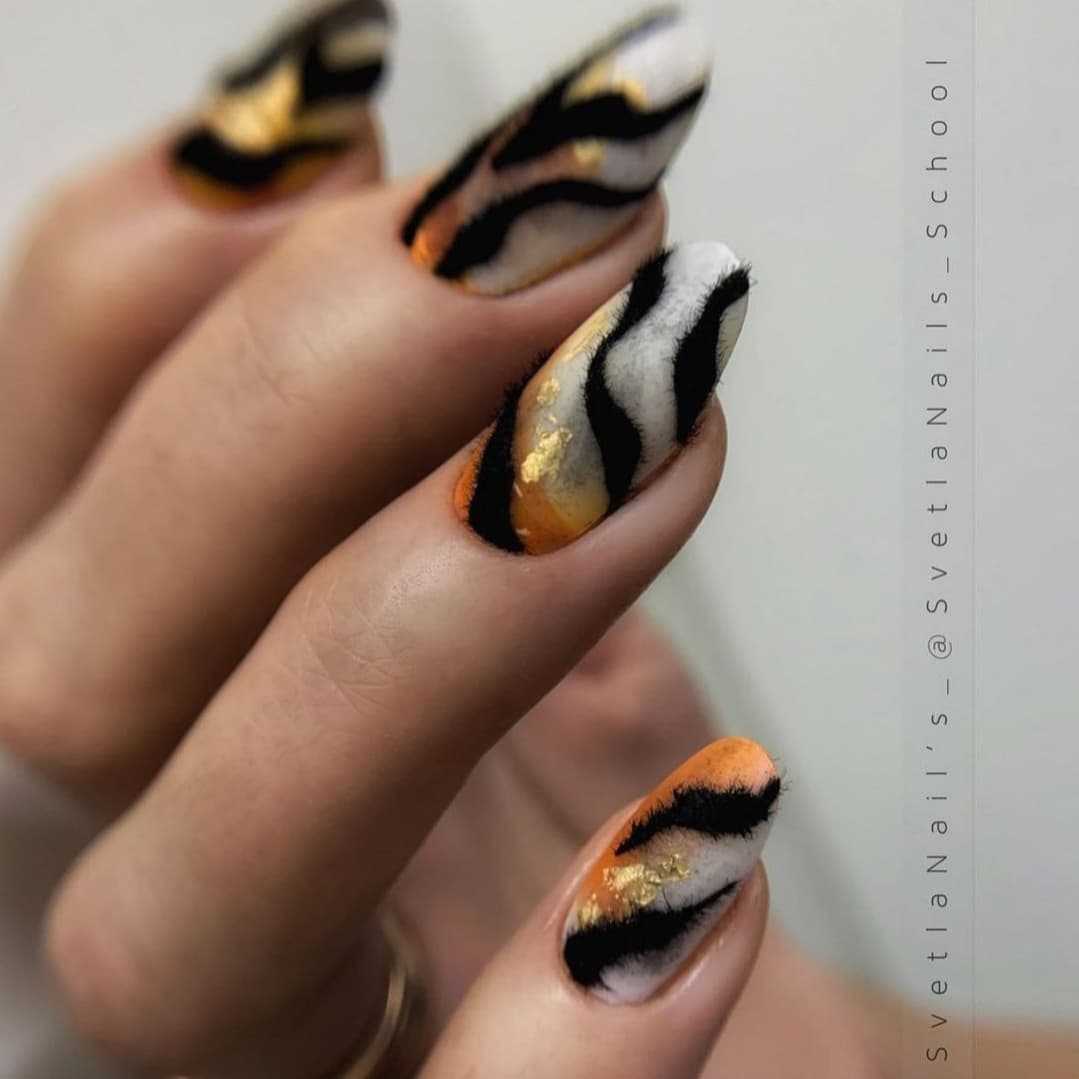 Животные принты могут быть хорошим выбором для особого случая, когда вы можете сопоставить с ними элемент одежды. Можно добавить немного другой дизайн на безымянный палец, чтобы дополнить короткие ногти и создать более изысканный вид.