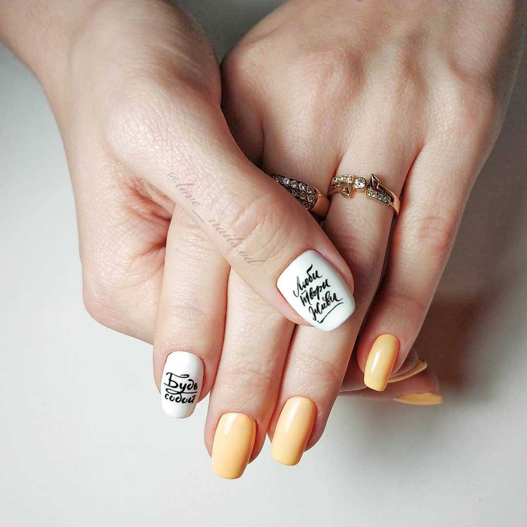 - Надписи. Этим летом их лучше наносить на прозрачную или бежевую основу.