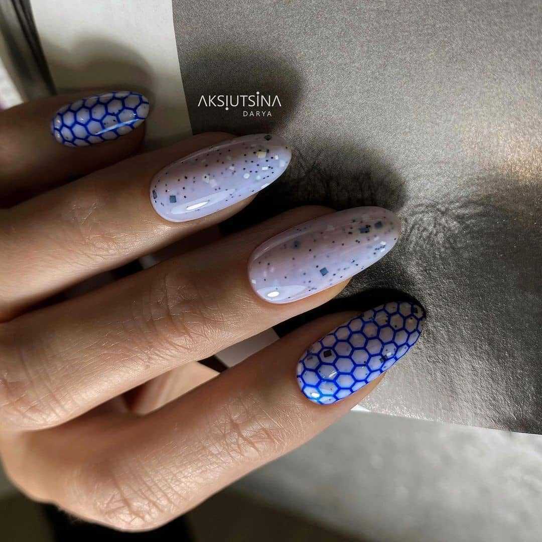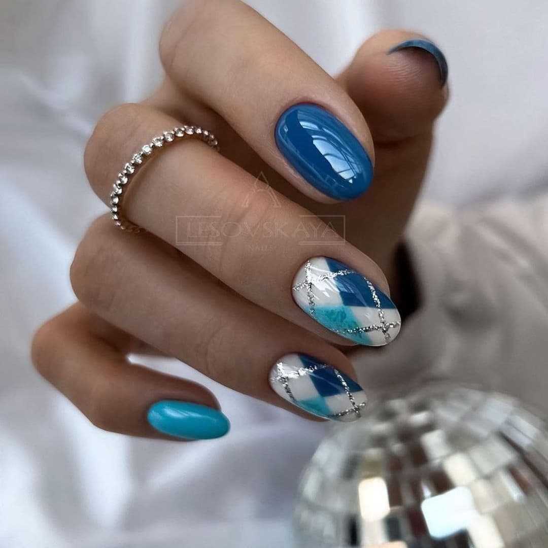 Геометрия часто содержит разные цвета, которые сочетаются друг с другом. Мастер также может добавлять блестки и стразы.