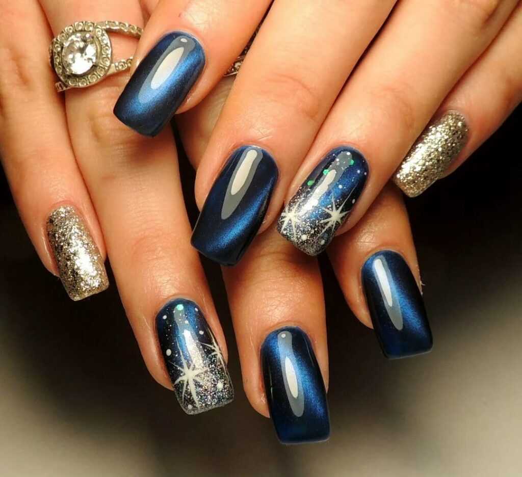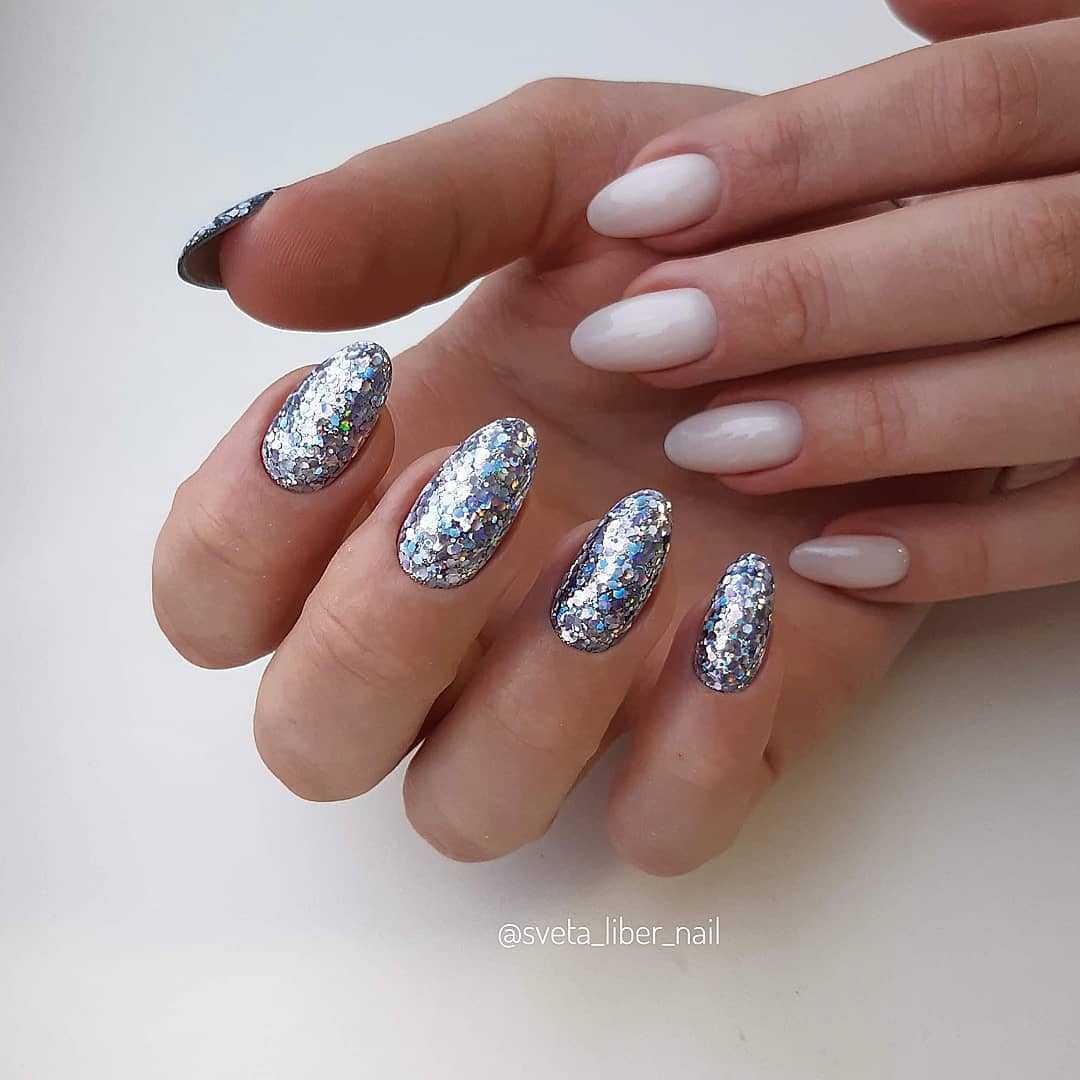 Блестки ассоциируются с вечерним маникюром. Золото и серебро, крупные стразы и мелкая россыпь блесток – это беспроигрышный вариант для торжественного вечернего мероприятия, новогодней вечеринки и любого выхода в свет, где, в прямом смысле, нужно блистать.