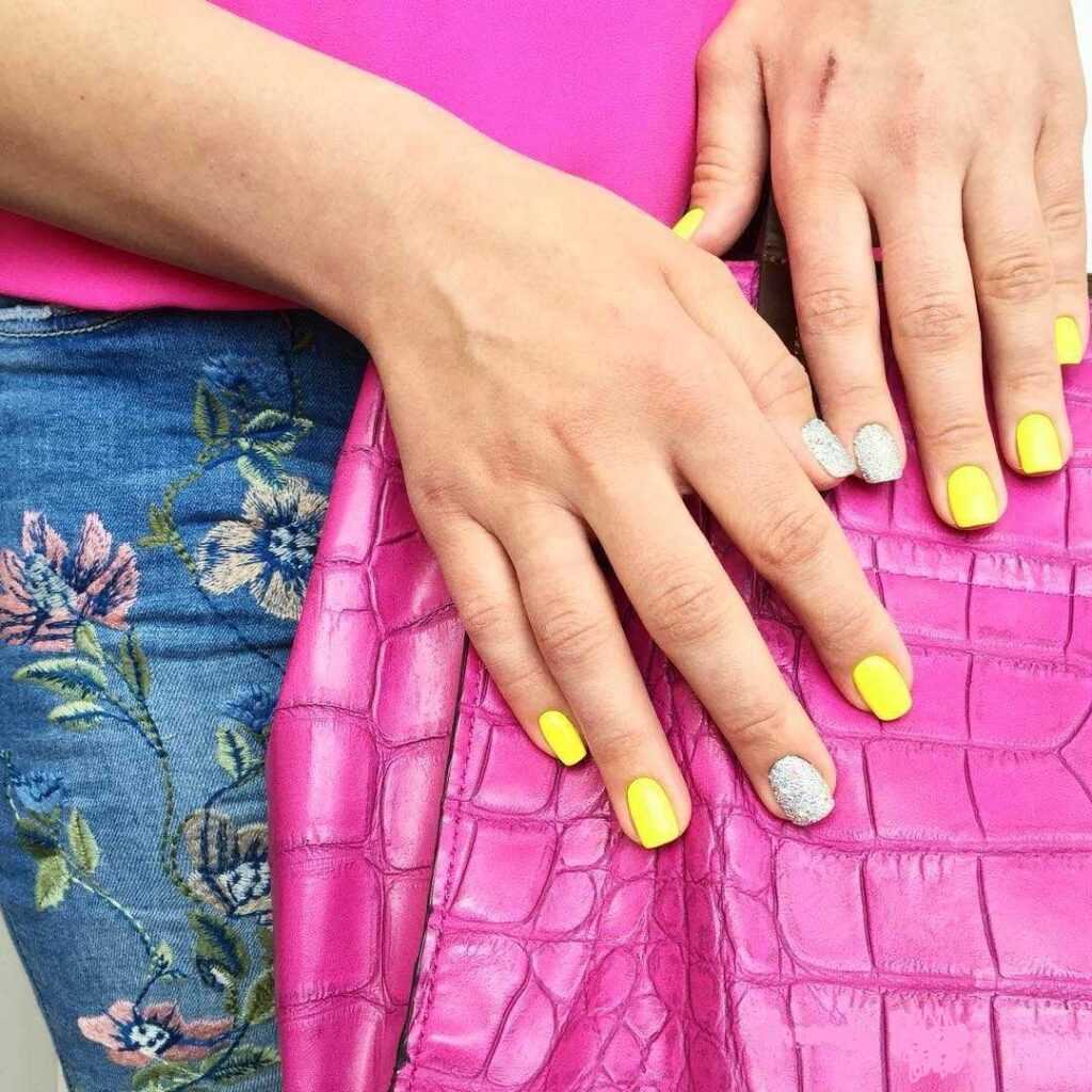 Желтый самый яркий, жизнерадостный и заметный. Он красиво смотрится на загорелых ручках. Если вы любите жизнерадостные оттенки, смело выбирайте желтый.