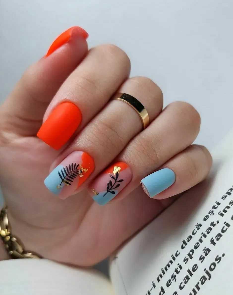 Для летнего маникюра характерны яркие сочные краски. Можно использовать любую технику nail art для создания уникального дизайна. Подойдет абстракция, цветочный принт, градиент, френч и другие стили. Используют пляжные мотивы, фруктовый микс.