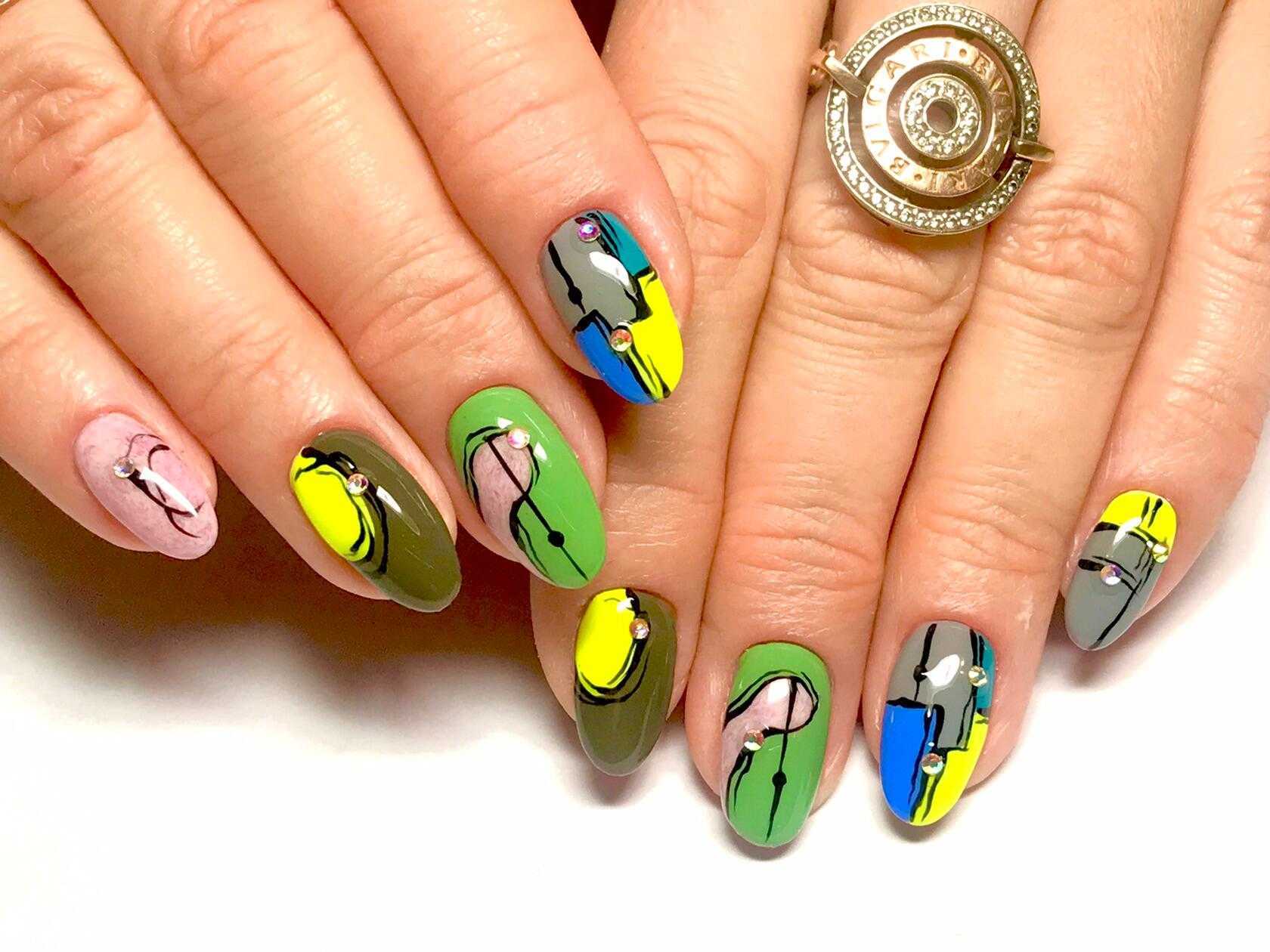 На смену строгой геометрии в новом летнем сезоне приходит абстракция с её мягкими, плавными линиями, необычными сочетаниями цветов и футуристическими формами. Мастера предлагают использовать сразу несколько приемов декорирования: линии, штрихи, точки, негативное пространство.