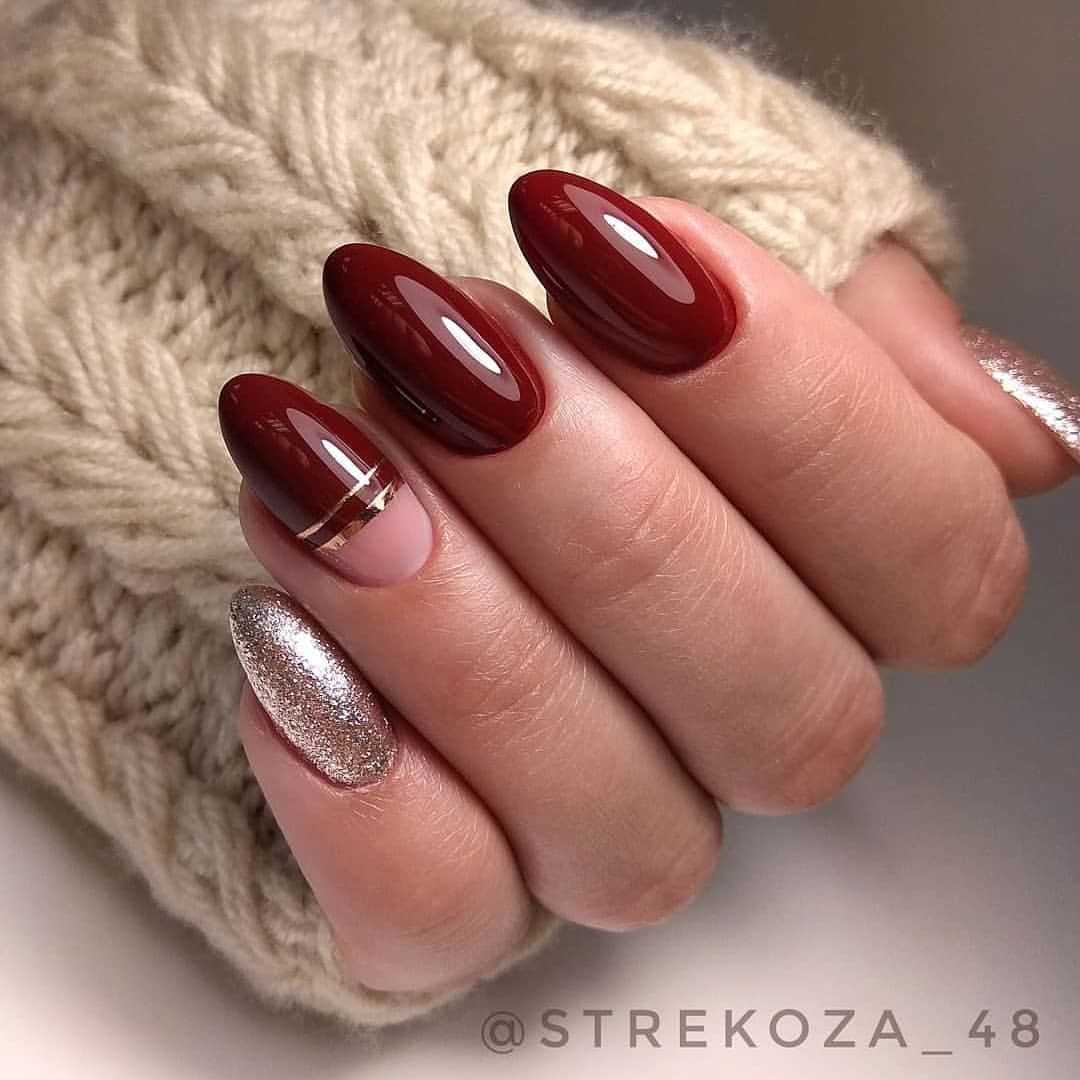Обрати внимание и на маникюр, выполненный в светло-малиновых и темно-малиновых оттенках. А глубокий и интенсивный бордовый цвет – само воплощение элегантности и городского шика