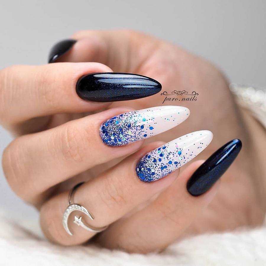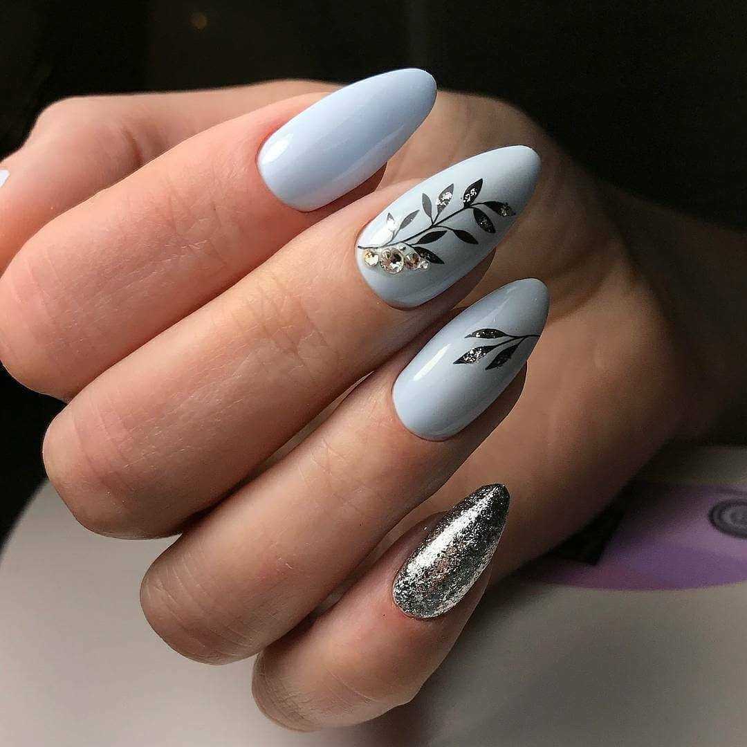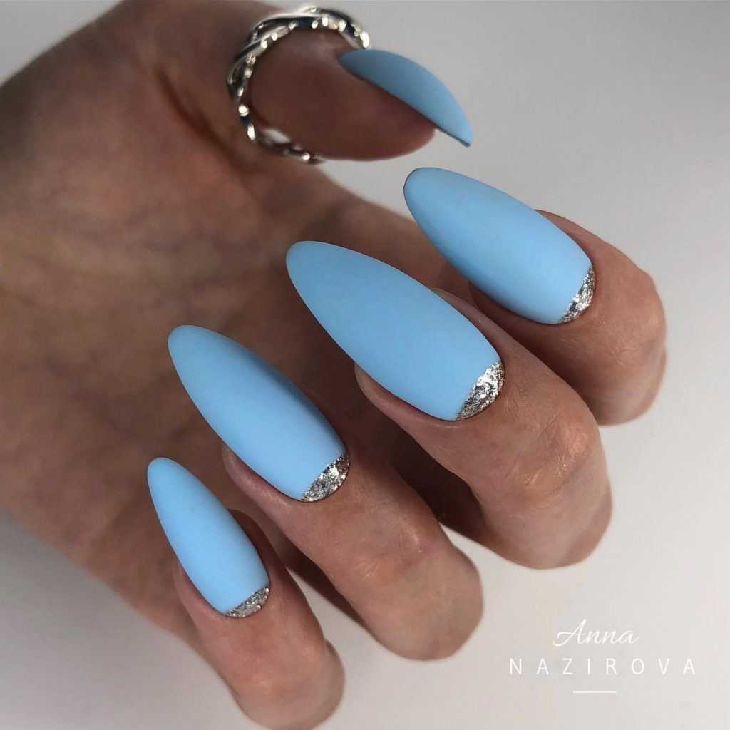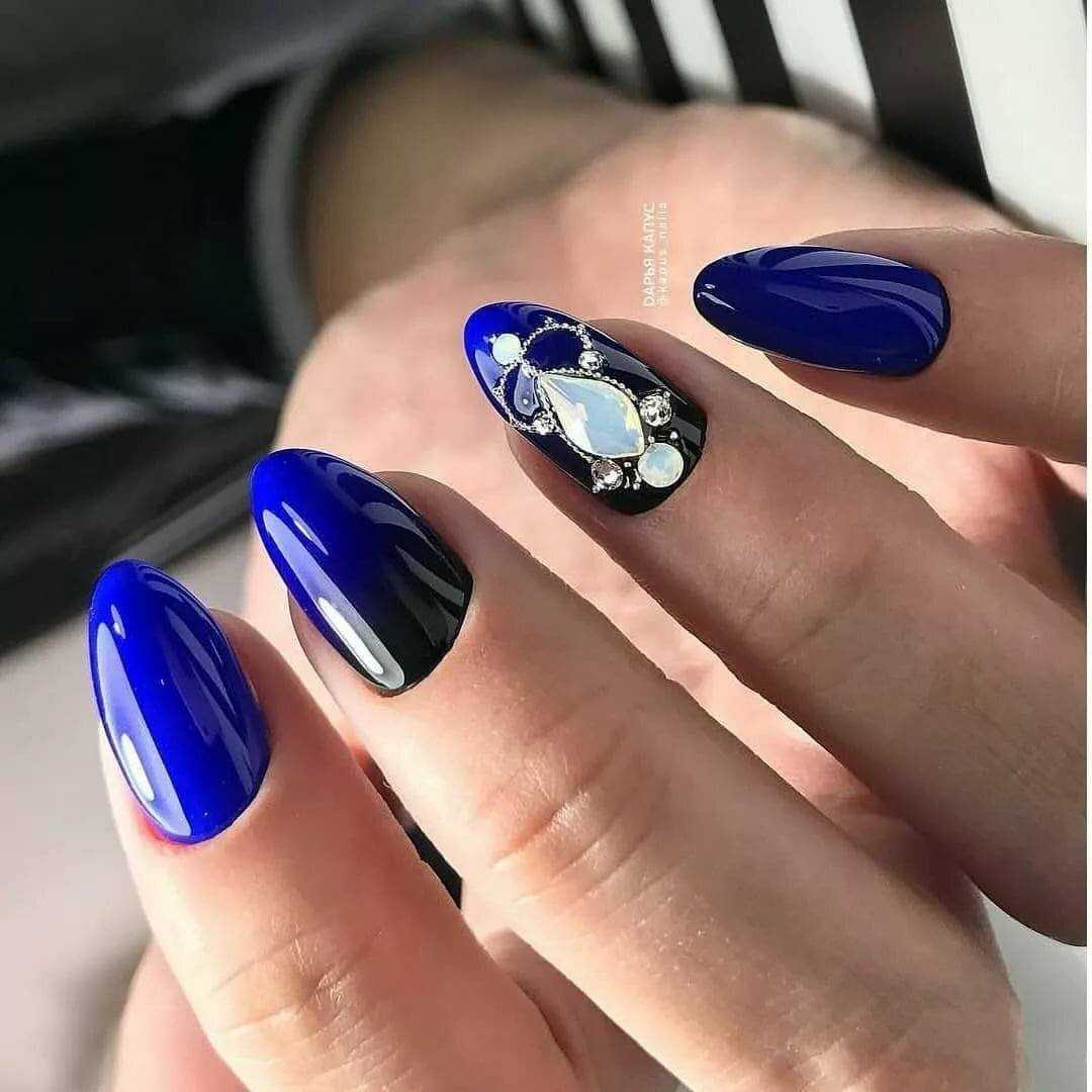 Этот цвет находится в трендах 2019 года. Синий цвет придает изящности как на длинных, так и на коротких ноготках.