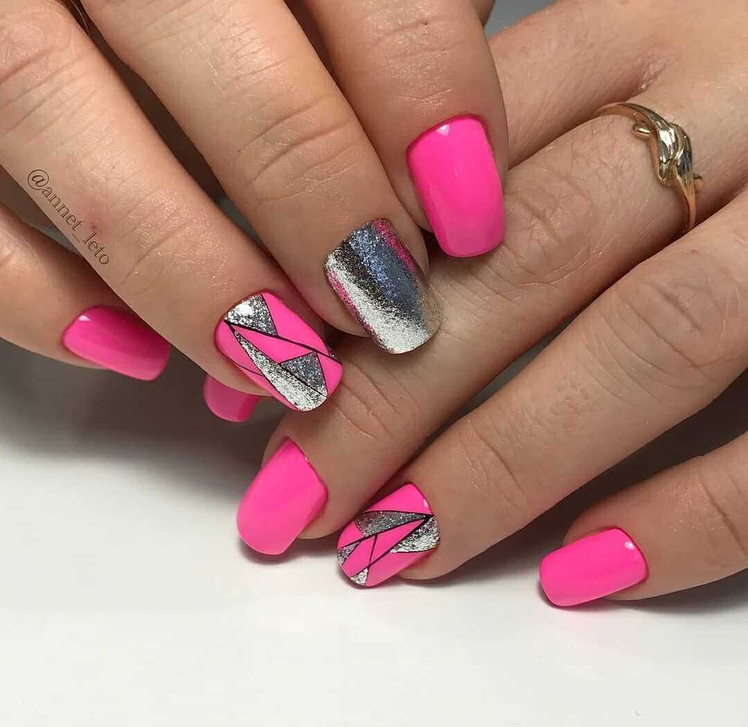 К тому же можно создать огромное множество вариантов ярко-розового маникюра, благодаря разнообразию оттенков. Это может быть фуксия, яркий зефирный, насыщенно-розовый или кислотно-розовый.